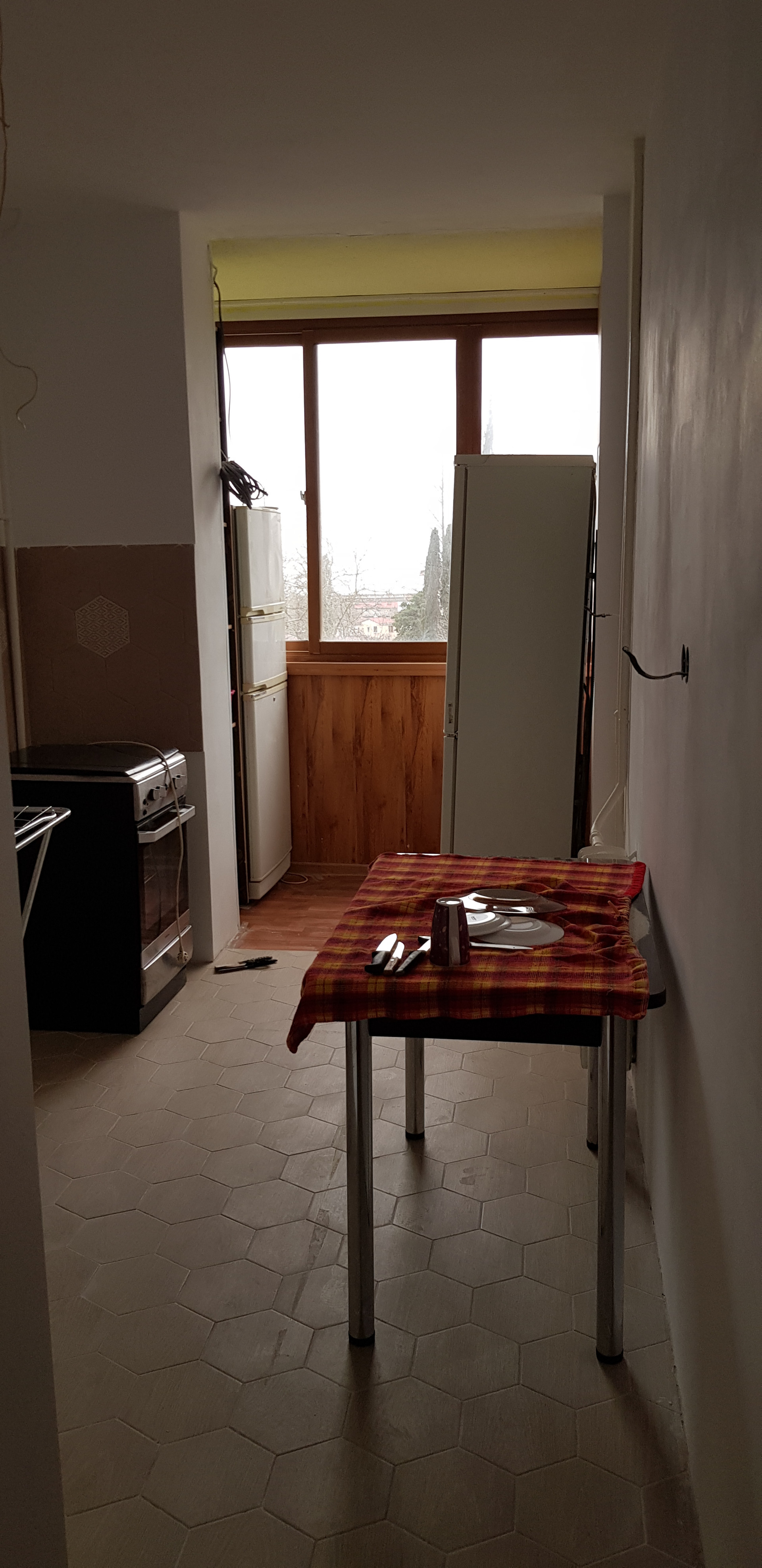 Квартира на восьмом этаже двенадцатиэтажного панельного дома, в центре Хосты. Из окна вид на море.