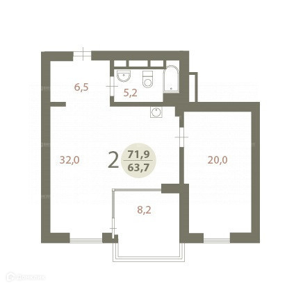 Общая площадь 72 м2
