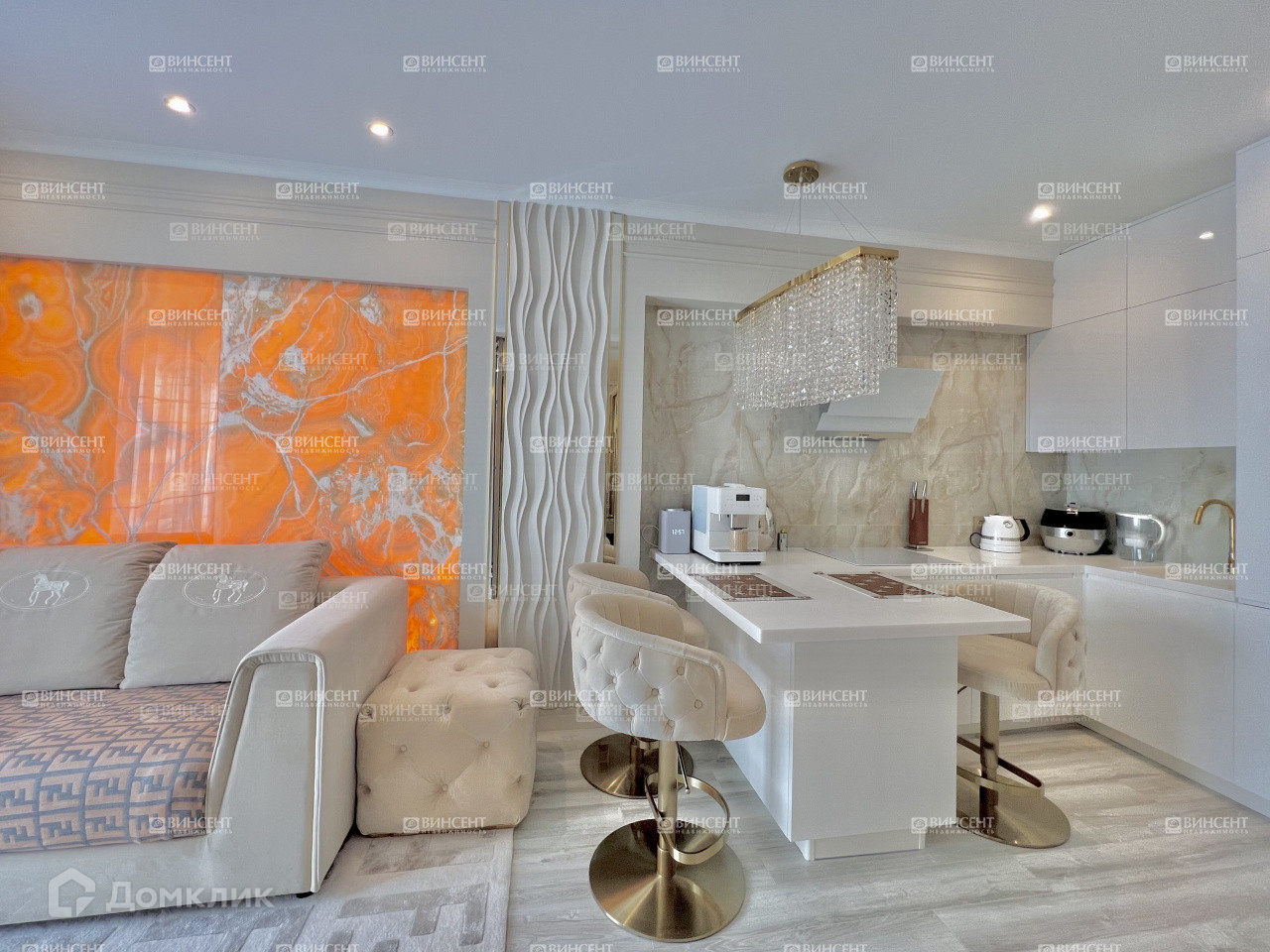 Кухня-гостиная соединены, наполнены деталями создающими неповторимую атмосферу роскоши и уюта.