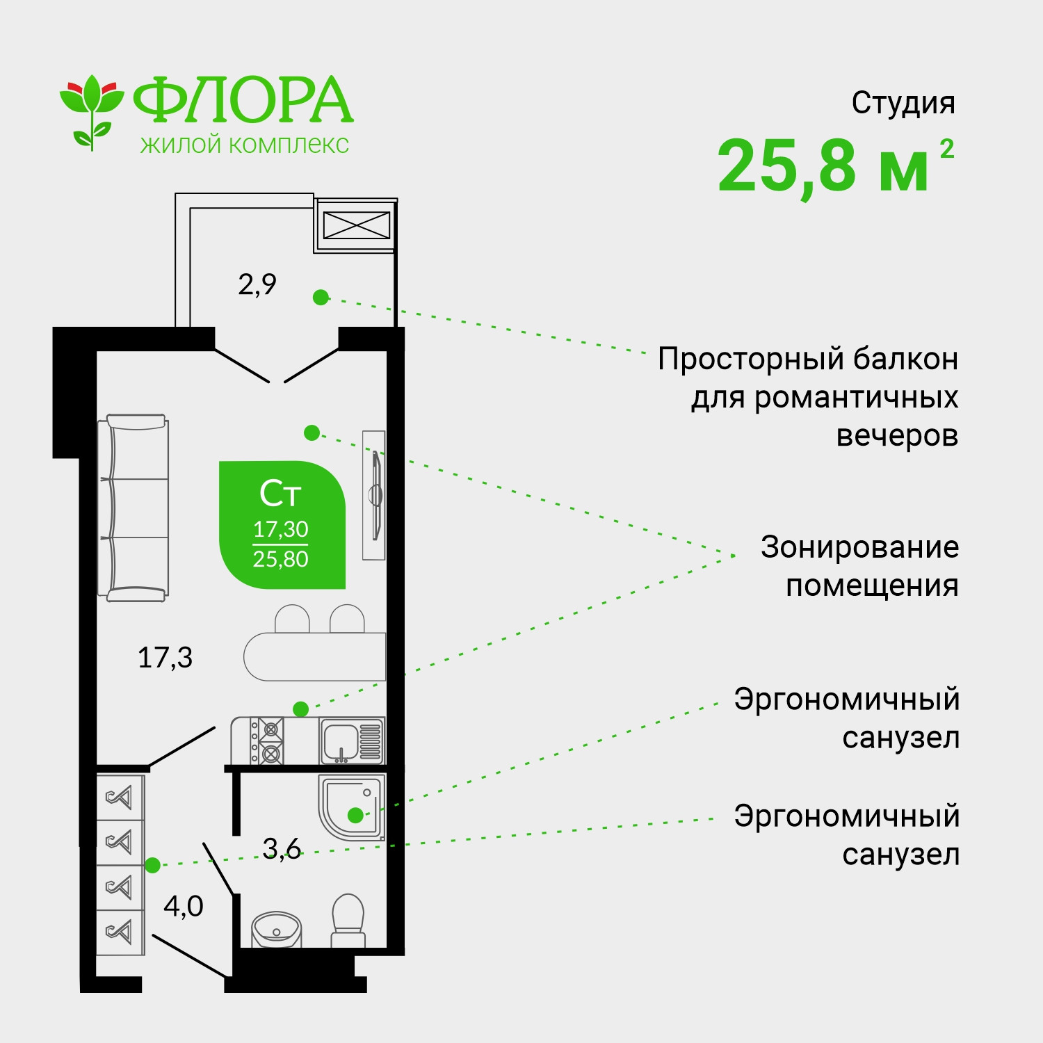 Общая площадь 26 м2