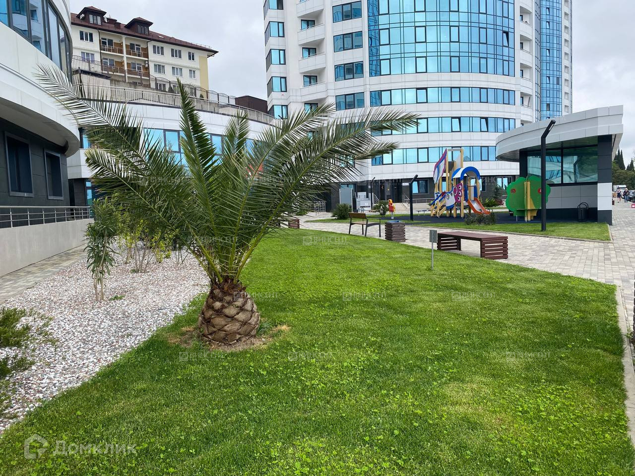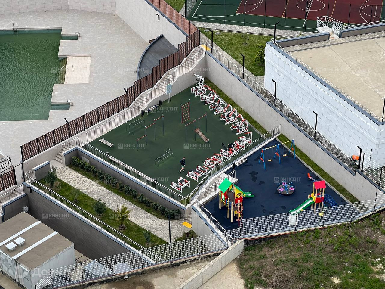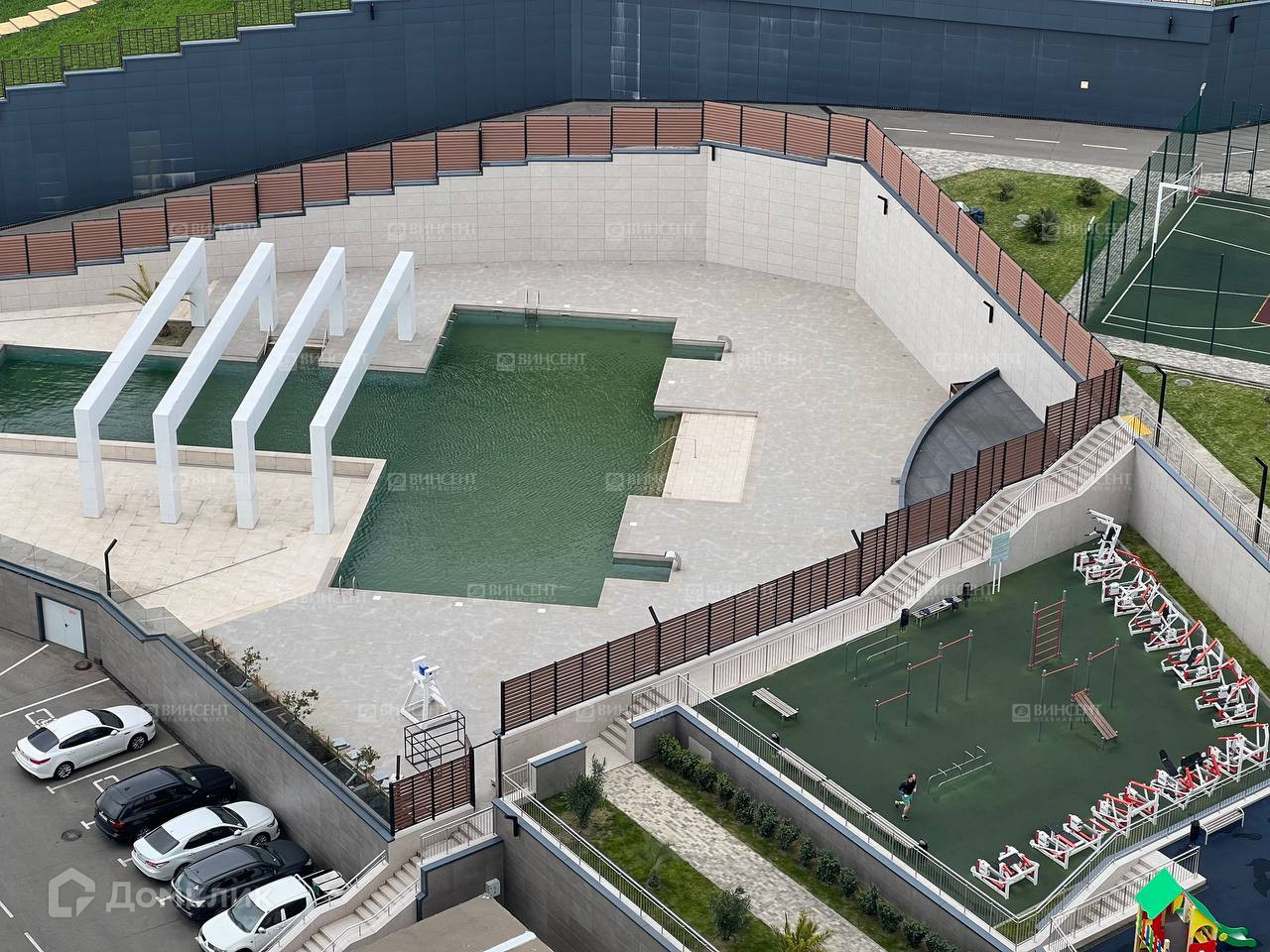 Закрытая придомовая территория для отдыха детей и взрослых, спортивные и Workout площадки с тренажерами, 2 теннисных корта, столы для пинг-понга, настоящее футбольное поле, современный открытый бассейн, детские площадки, качели и многое др. Вы можете купаться, загорать и заниматься спортом не выходя за пределы комплекса. Удачное расположение комплекса: всего 450 метров до моря, супермаркет "Перекресток" находится на территории комплекса, рядом остановка общественного транспорта.