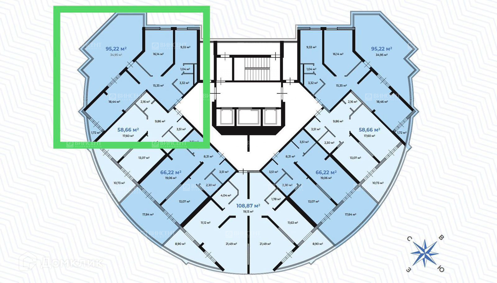 Общая площадь 95.22 м2