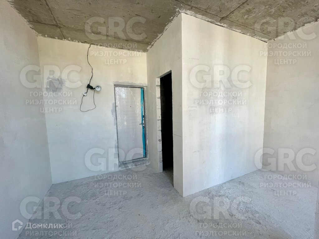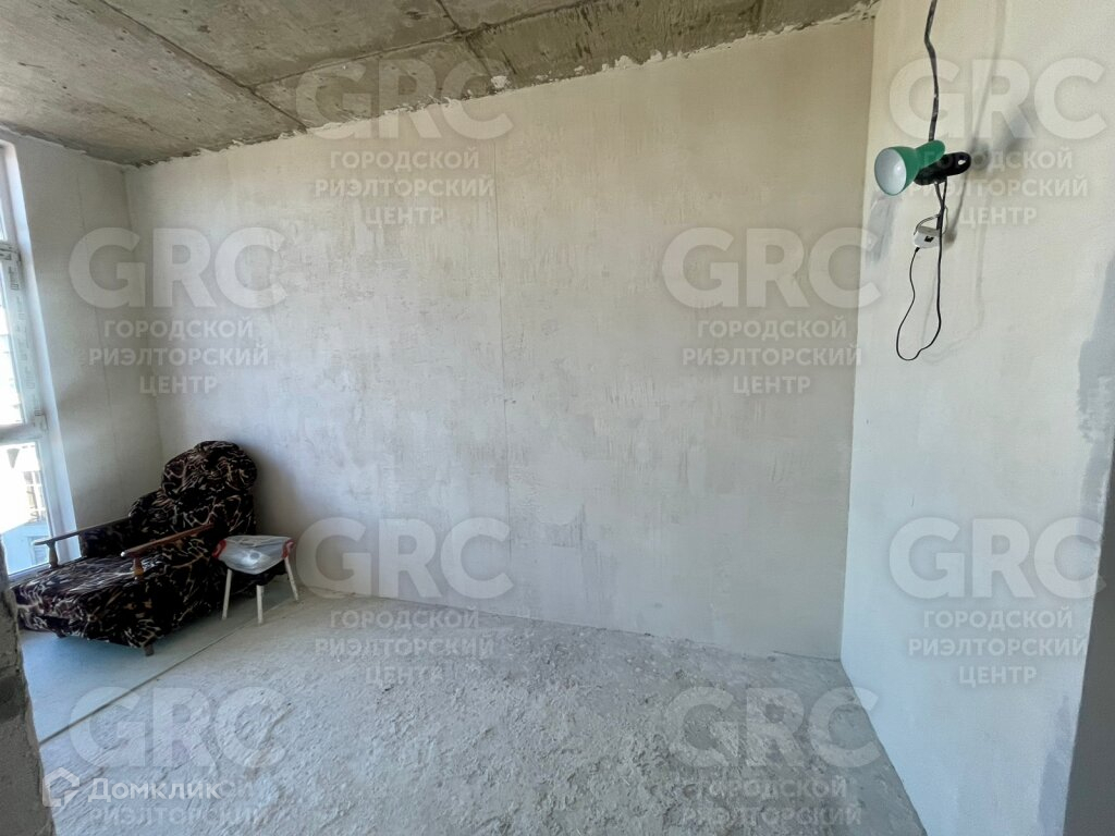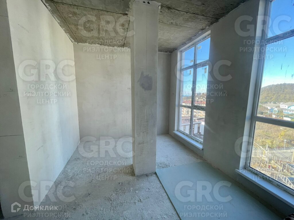 Студия с двумя окнами, выделен санузел, сделаны штукатурка стен и откосы.