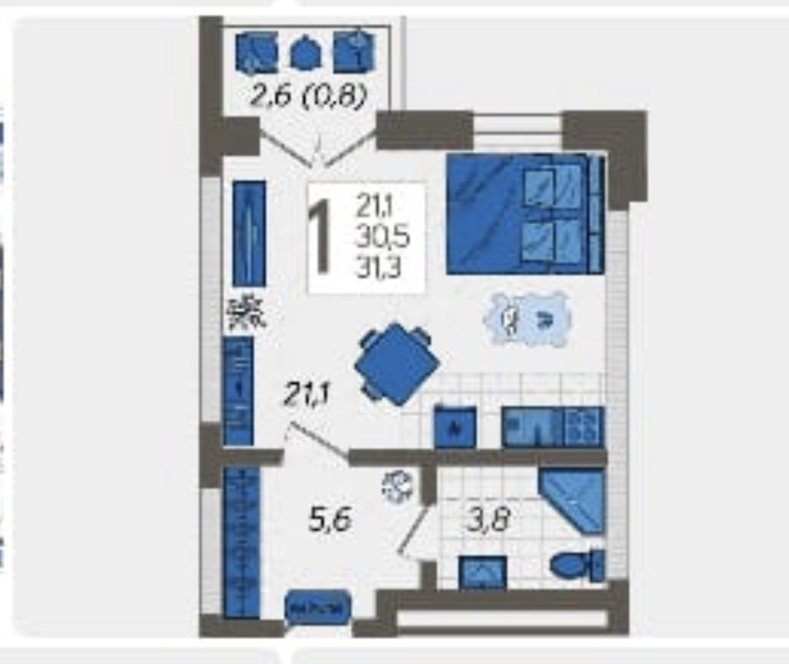 Общая площадь 31.3 м2