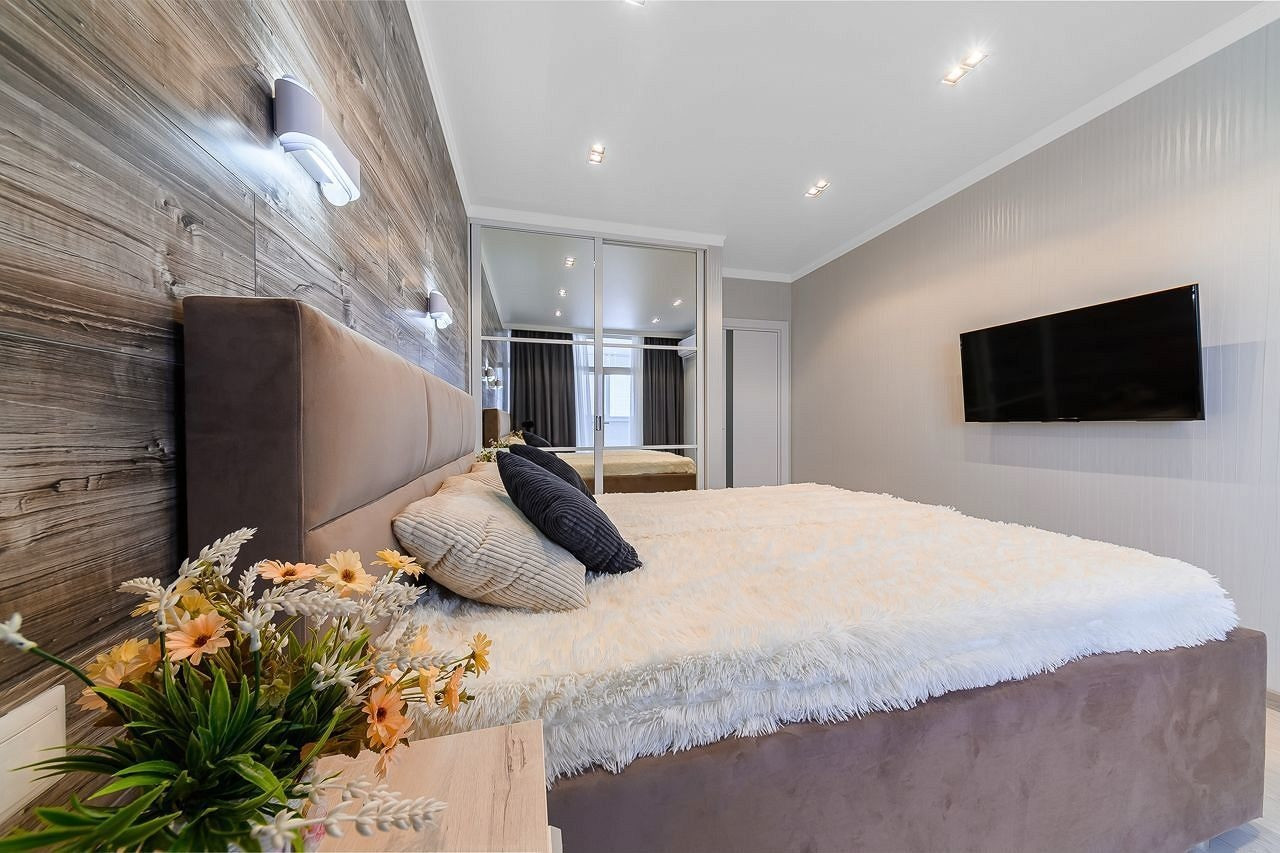 Просторная гостиная, кухня , две выделенные комнаты, совмещенный санузел. Квартира укомплектована мягкой мебелью, техникой, кухонный гарнитур, гардеробная. Укомплектованный санузел сантехникой.