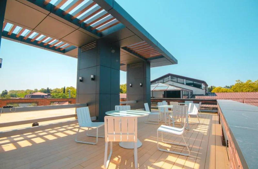 На его территории комплекса: лобби-бар, коворкинг для встреч и работы, салон спа и массажа, спортивная и детская площадка, а также прямо у комплекса расположен сквер для прогулок и фитнес центры.⠀