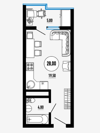 Общая площадь 28 м2