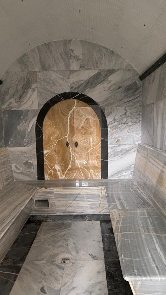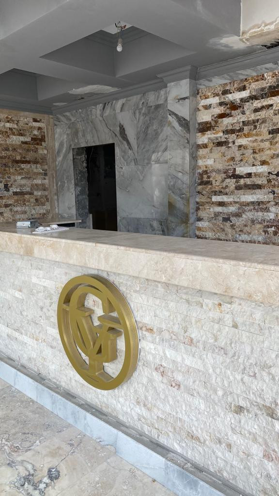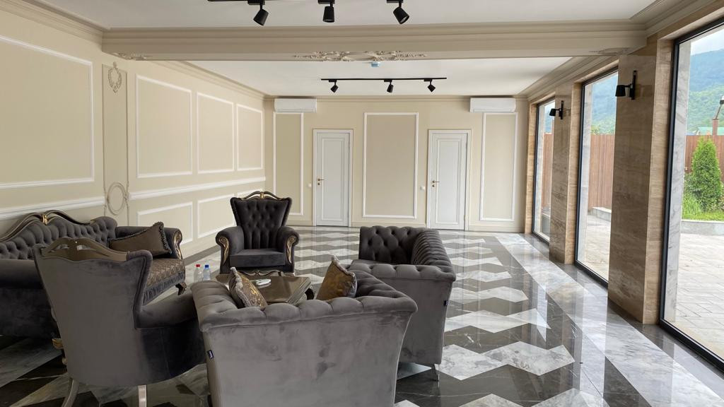 Натуральный камень, Травертин, Керамогранит. Панорамный лифт. Коммуникации центральные ( свет, вода, канализация) заведены в квартиру. Газовая котельная (без доплат).