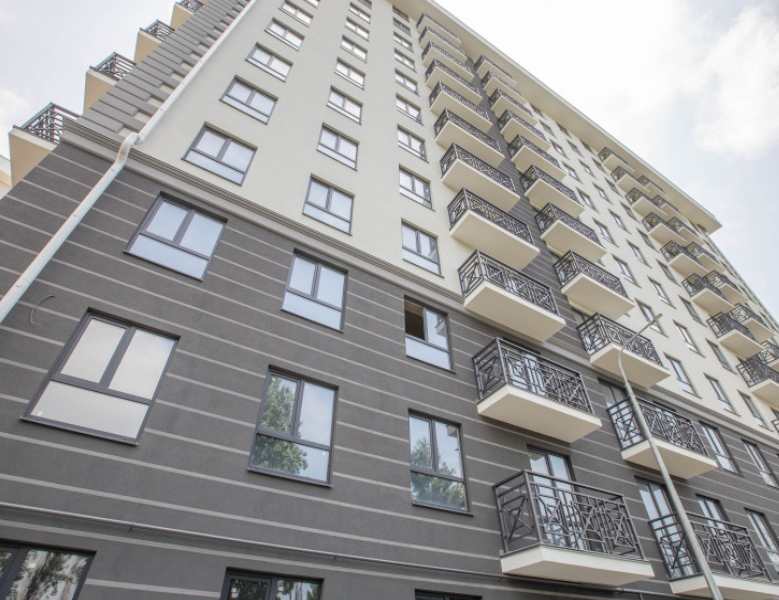 Установлены большие окна и металлические ограждения балконов.