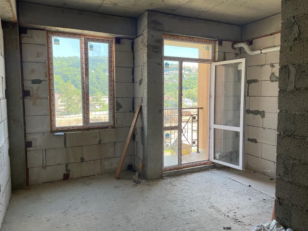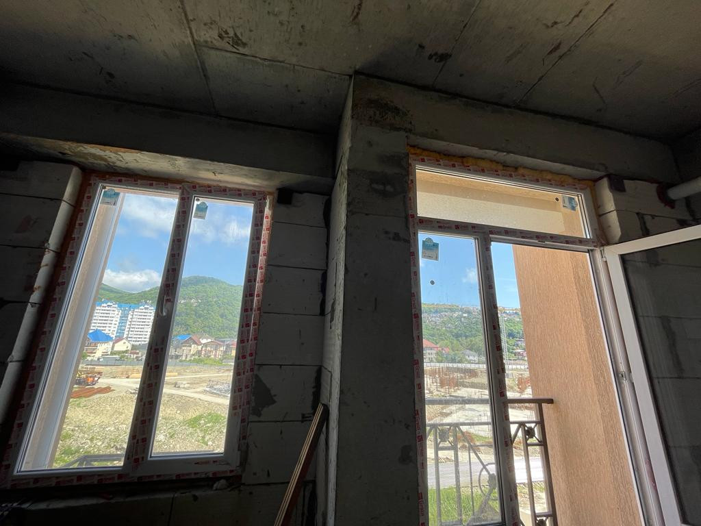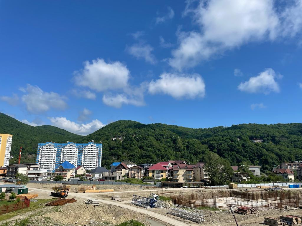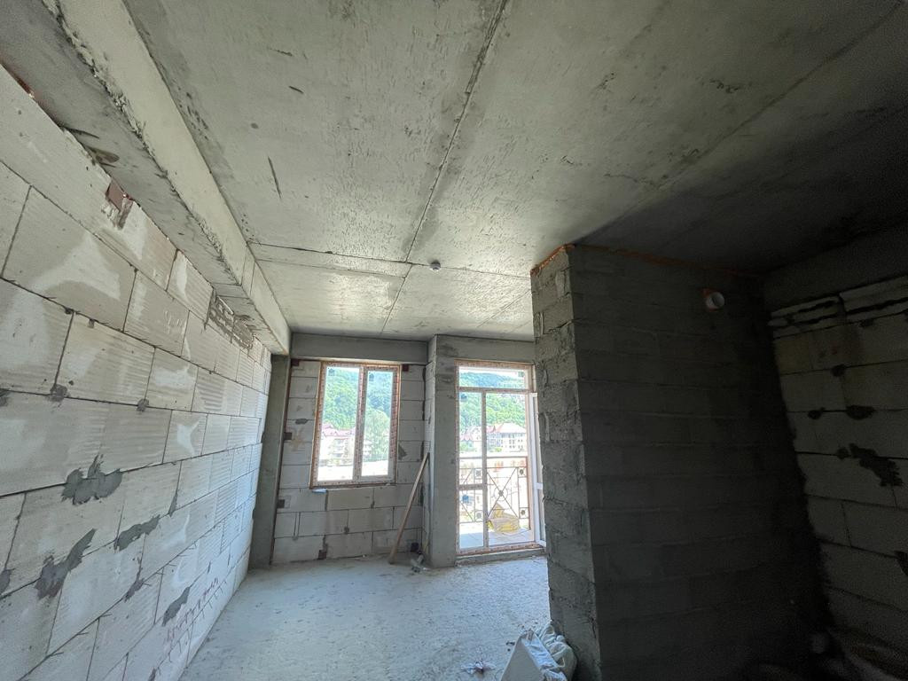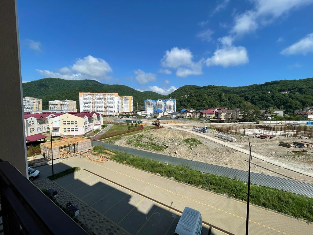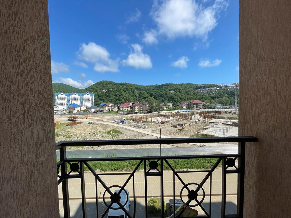 Площадь студии 23 кв.м с выходом на балкон. Окна выходят на речку, ущелье, из окон прекрасный вид.