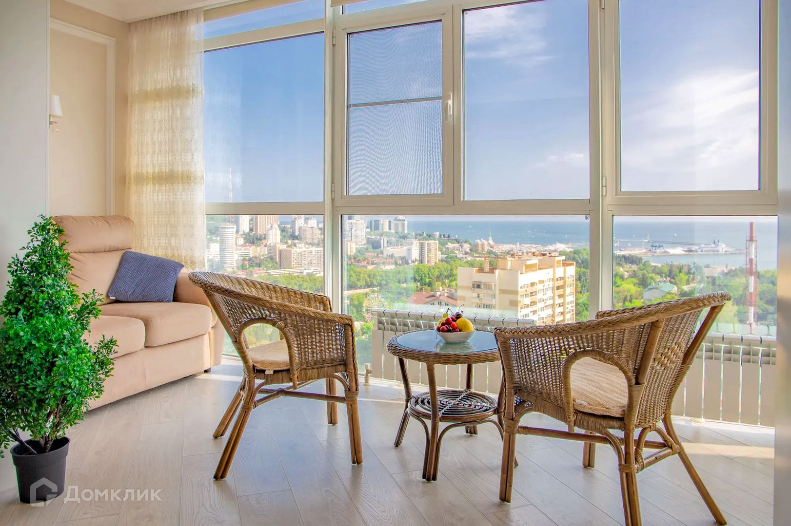 Квартира с элегантным ремонтом находится на высоком этаже, откуда открывается захватывающий вид на море!
