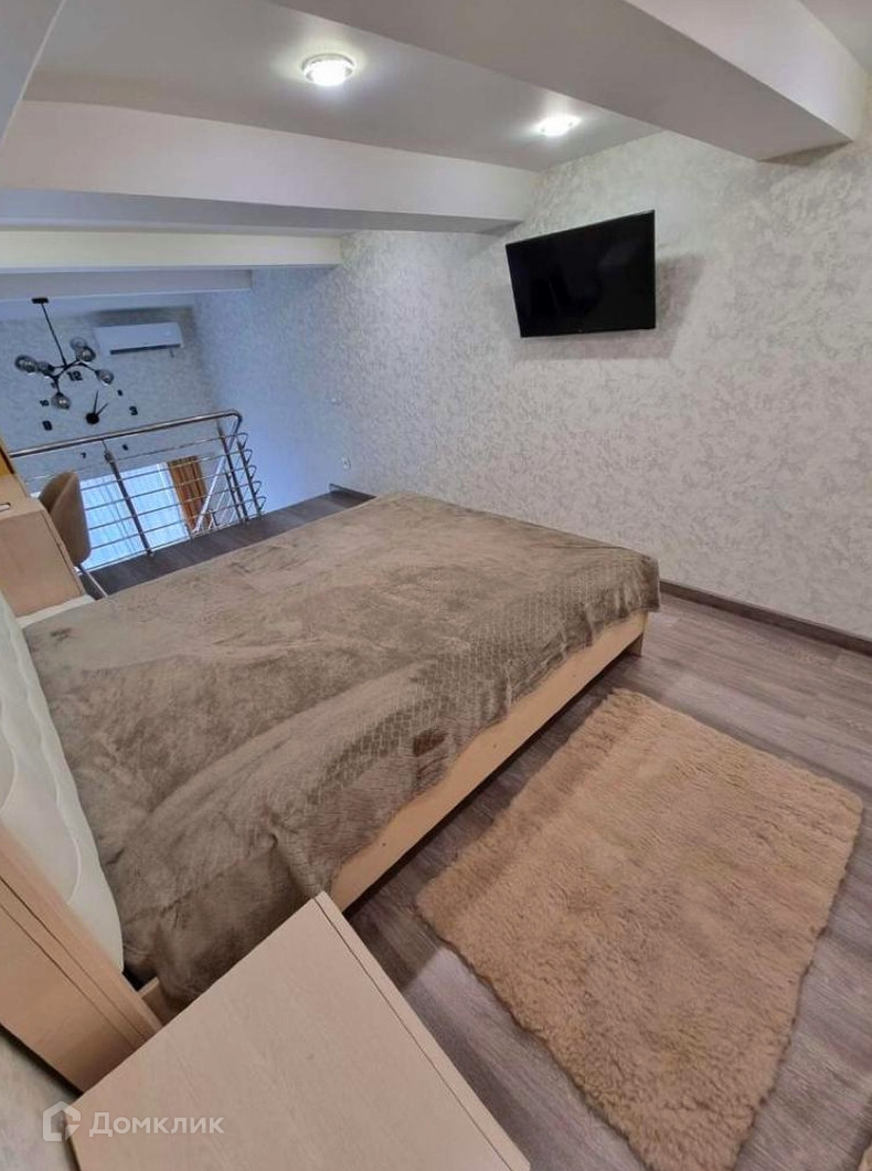 Первый этаж квартиры представляет собой просторную кухню-гостинную, где вы сможете проводить время в компании друзей и близких. Второй этаж предназначен для спальни