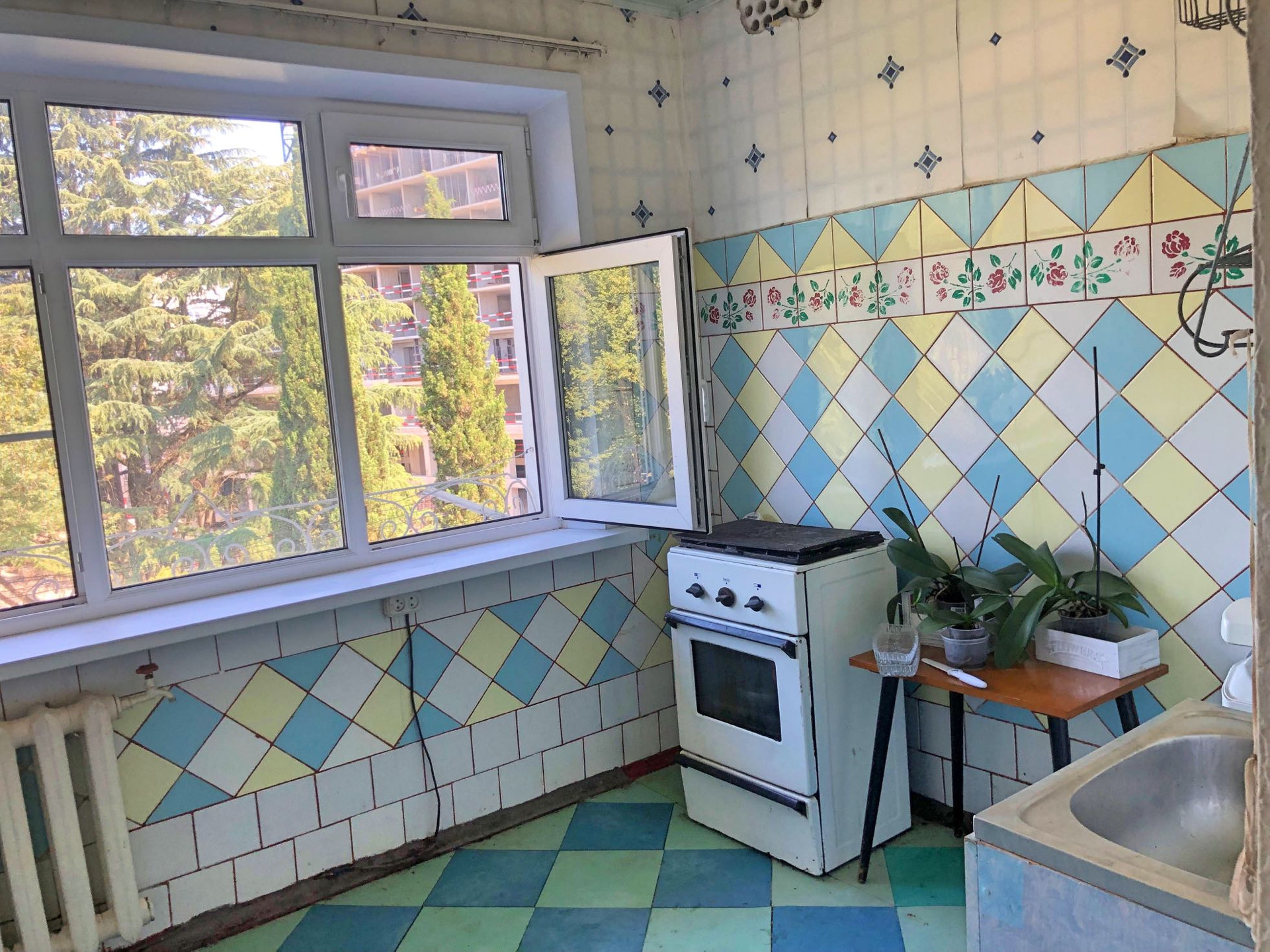 Отличное предложение для тех, кто хочет зарабатывать на сдаче квартиры или просто жить самому у моря. 1 к квартира расположена в центре Хосты, по улице 50 лет СССР. Рядом развитая инфраструктура, до моря 3 минуты пешком. Квартира общей площадью 36 кв.м., из которых 31 кв.м. жилая площадь и 5 кв.м. площадь лоджии. Требуется капитальный ремонт.  Квартира угловая, светлая. Дом 1970 г.стр., монолитные железобетонные стены, ленточный фундамент.  Все коммуникации центральные. На придомовой территории есть детская площадка. Рядом вся развитая инфраструктура: магазины, кафе, почта, остановки общественного транспорта и т. д.