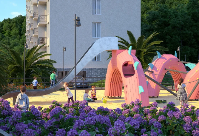 Есть открытый бассейн только для жильцов комплекса.