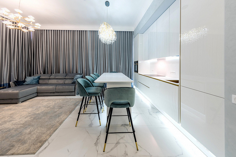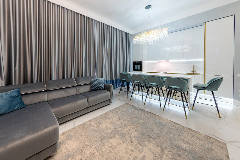 В квартире выполнен дорогой дизайнерский ремонт! Вся мебель и техника остается!