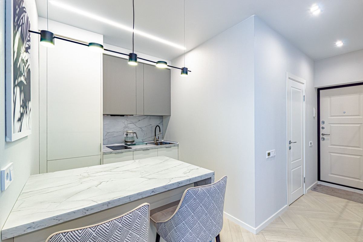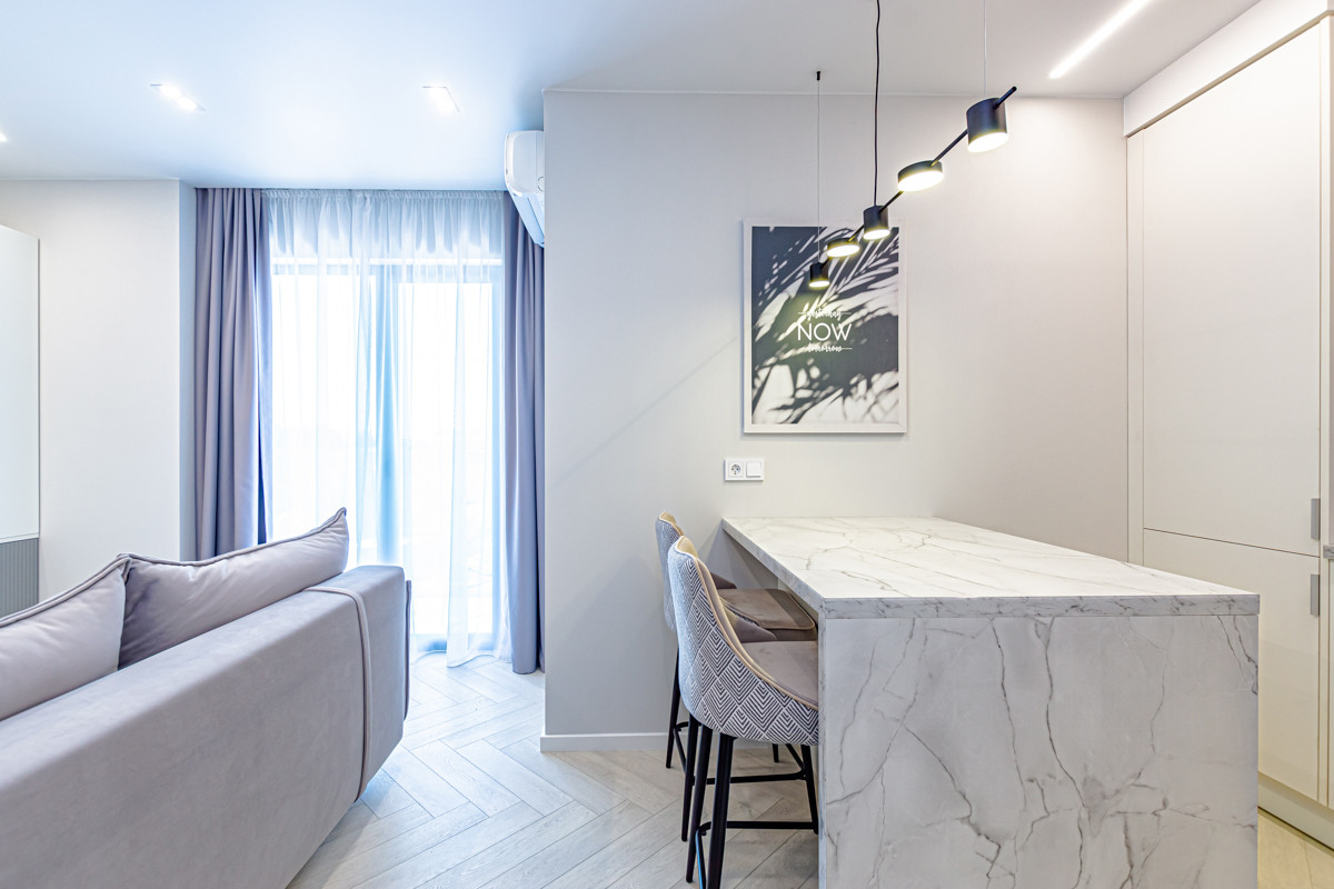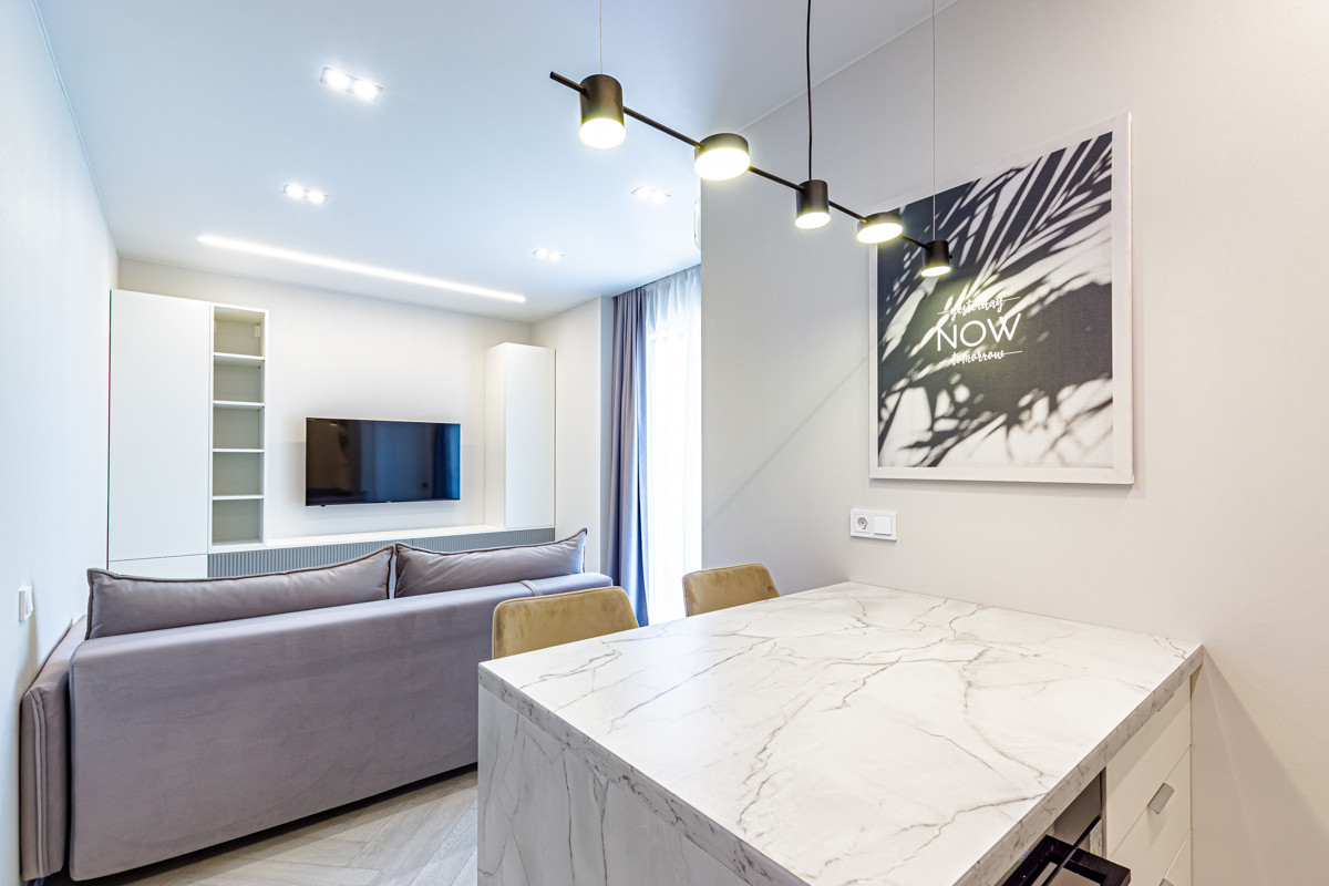 Квартира с новым дизайнерским ремонтом и грамотным зонированием пространства.