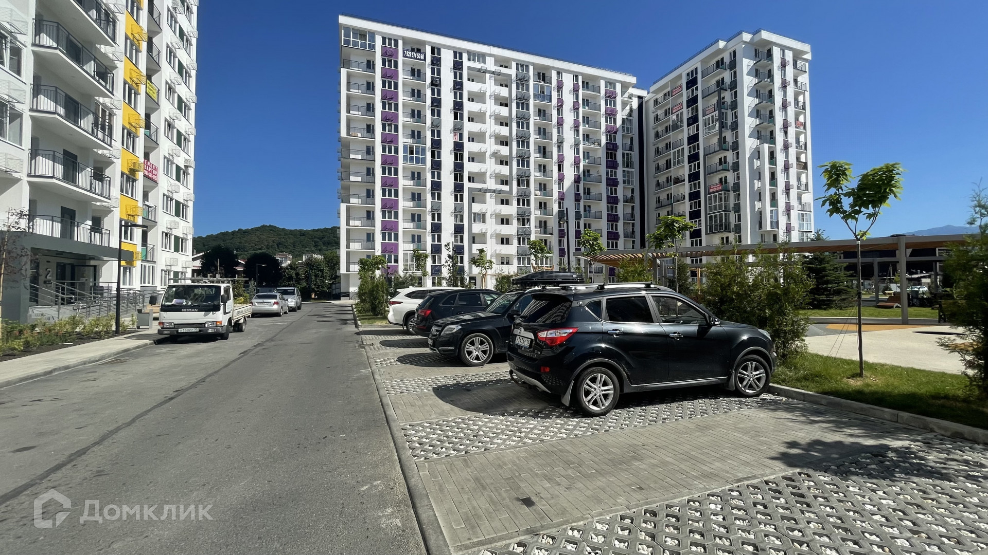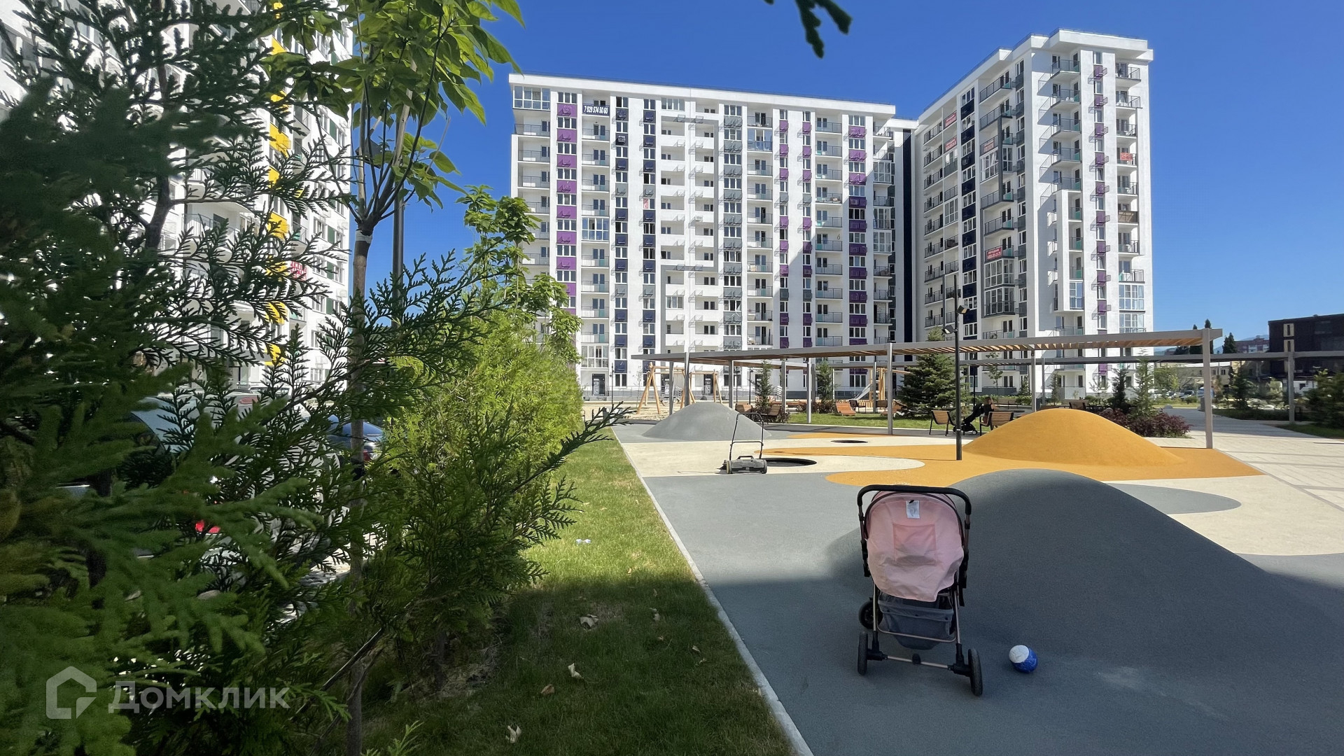 Из окон квартиры открывается шикарный вид на горы, кусочек моря и детскую площадку.