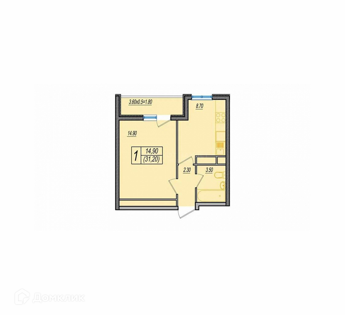 Площадь: 31,2 м2