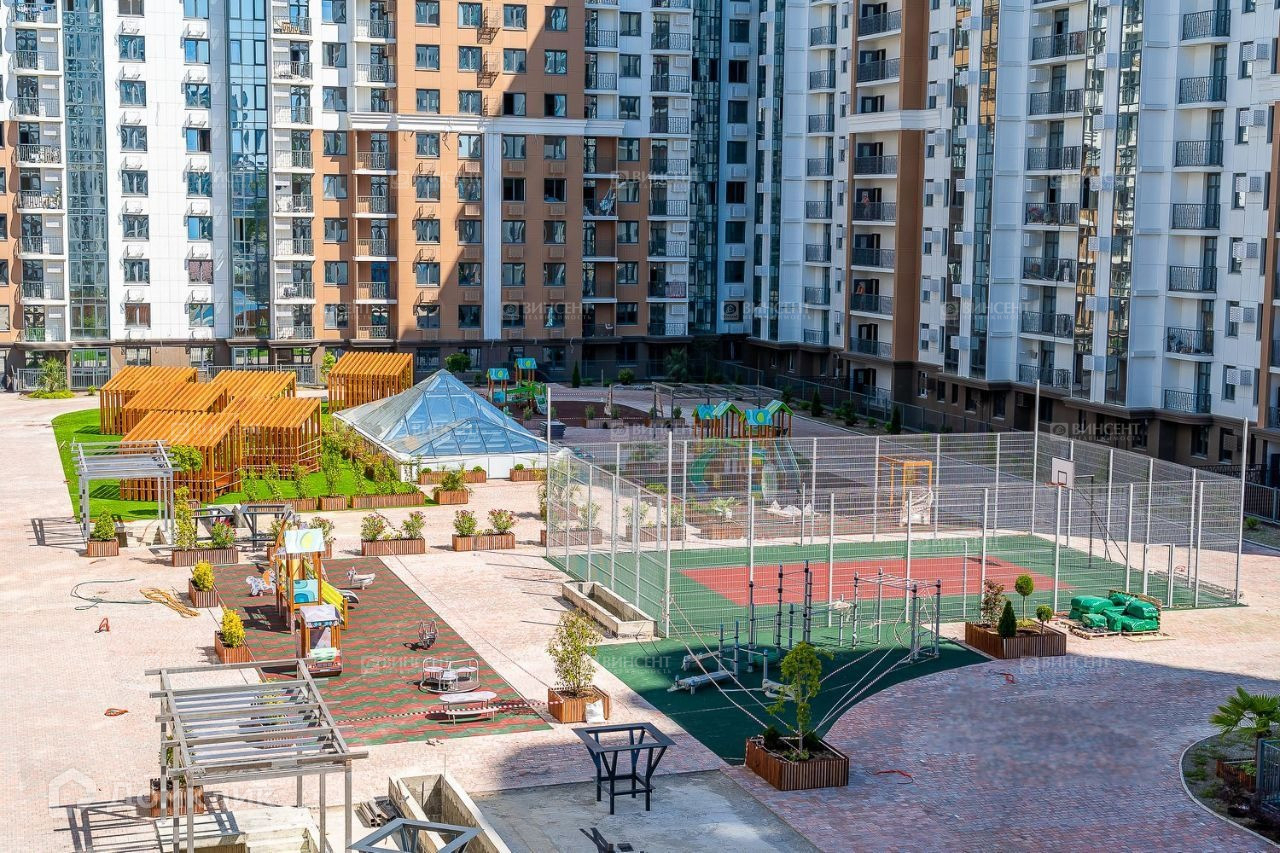 В жилом комплексе большая огороженная территория, консьерж, 4 быстрых лифта фирмы Отис, множество магазинов, салонов красоты, детские площадки, большая  надземная  парковка и многое другое.