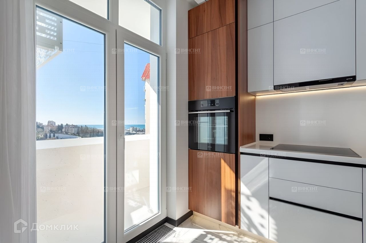 Квартира расположена на высоком этаже, установлены панорамные окна, открывается потрясающий вид на весь город, вершины снежных гор и море.