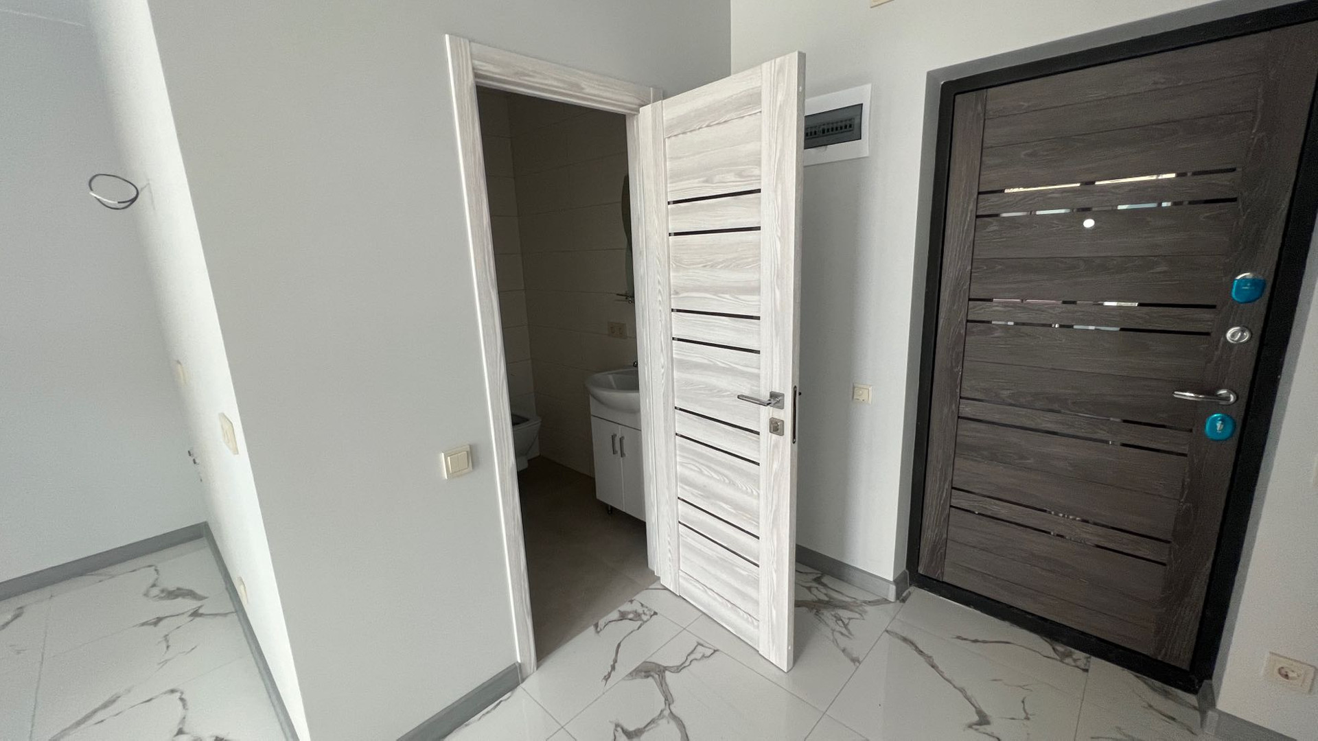 Предусмотрены выводы для кондиционера, необходимое количество розеток, установлен теплый пол, сантехника