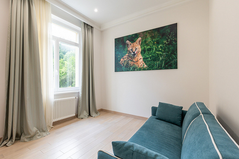Важен тот факт, что дополнительных вложений в обустройство пространства данная квартира не требует. Она полностью готова для жизни и отдыха, а интерьер может похвастаться приятным дизайном и продуманными акцентами. В основе оформления лежит современный классический стиль, дополненный этническими и анималистическими мотивами. Установлена дорогостоящая мебель и техника. Состояние квартиры безупречно  тут никто никогда не жил. Внутри царит атмосфера приватности, уюта и абсолютного спокойствия.