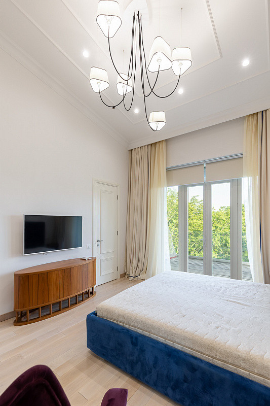 Общая площадь представленной квартиры  240 квадратных метров. Грамотное планировочное решение  гарант комфорта для всех домочадцев. Внутри выделено 5 изолированных спальных комнат, просторный зал с кухней. Также в квартире есть террасы.