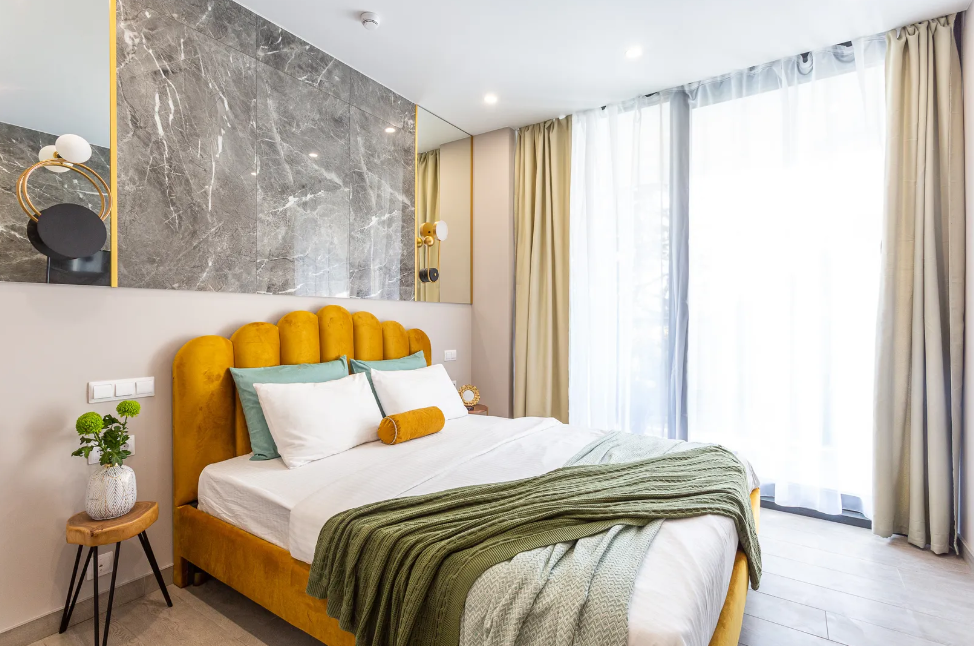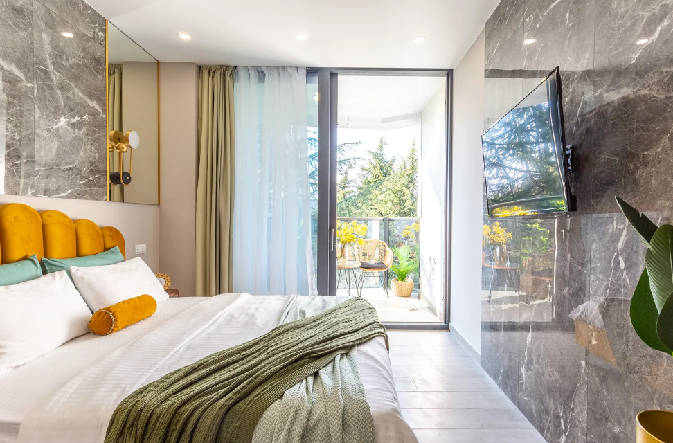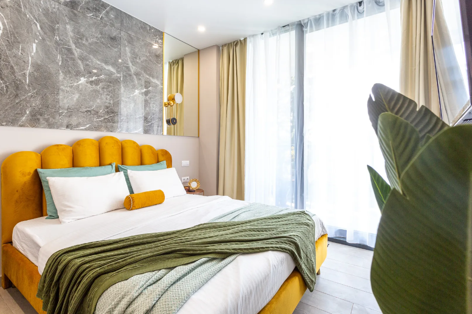 Апартаменты расположены на главной прогулочной аллее города, в 10 минутах ходьбы от пляжа Мандарин. Самые популярные городские пляжи, рестораны и магазины находятся в шаговой доступности, а развитая инфраструктура центрального района позволяет провести время ярко и со вкусом.