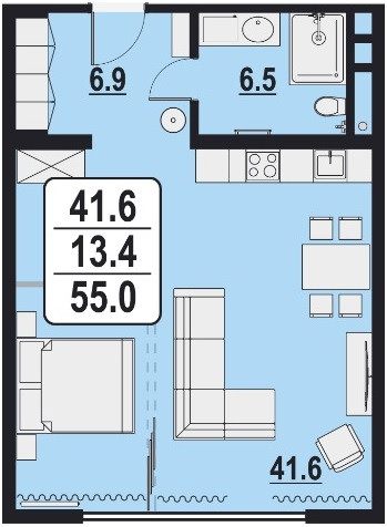 Общая площадь 55 м2