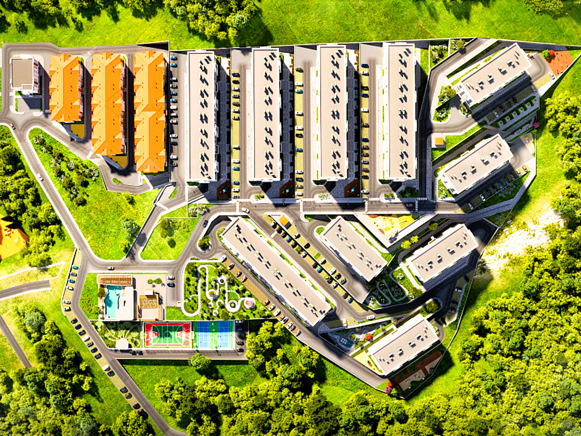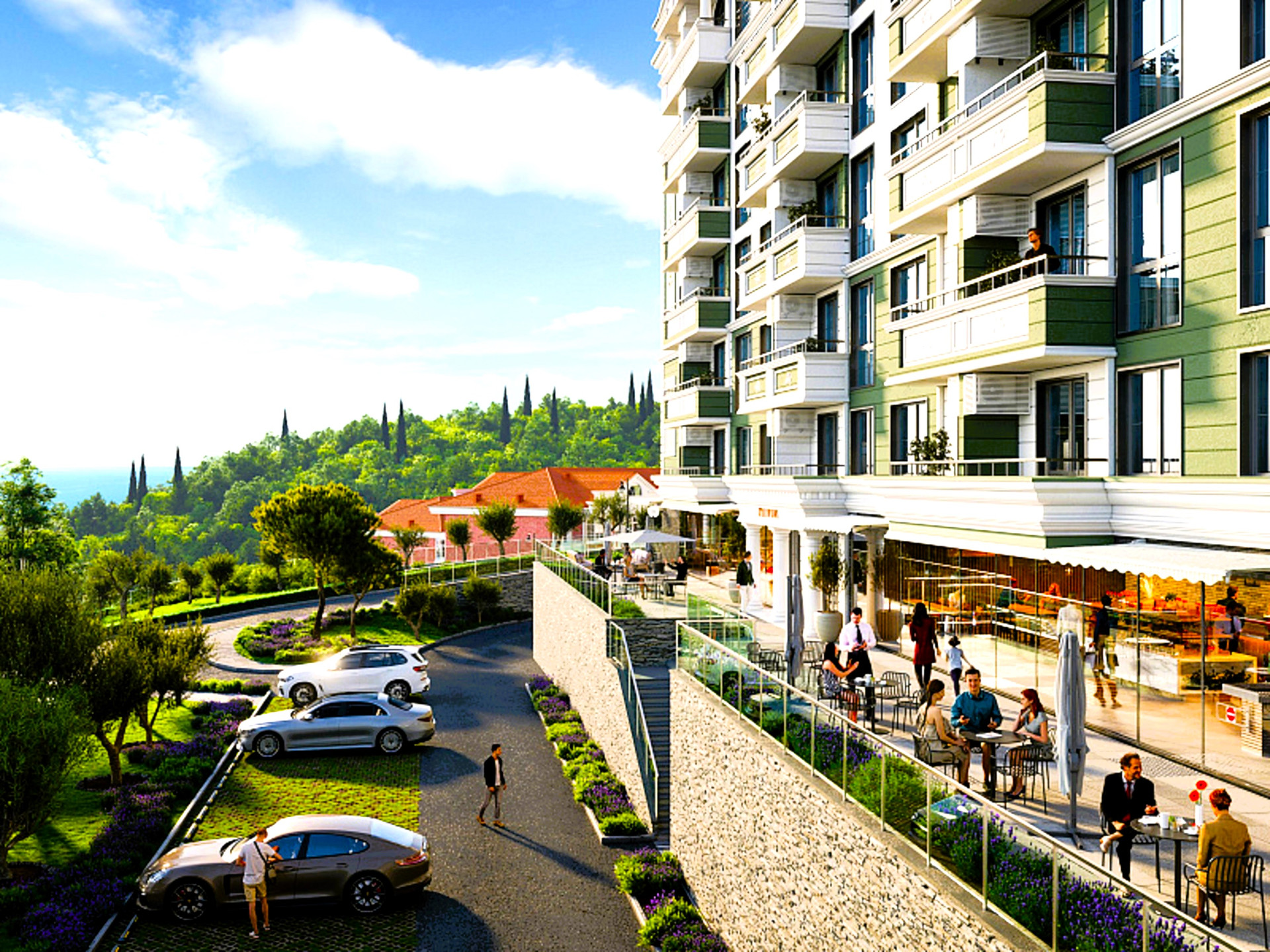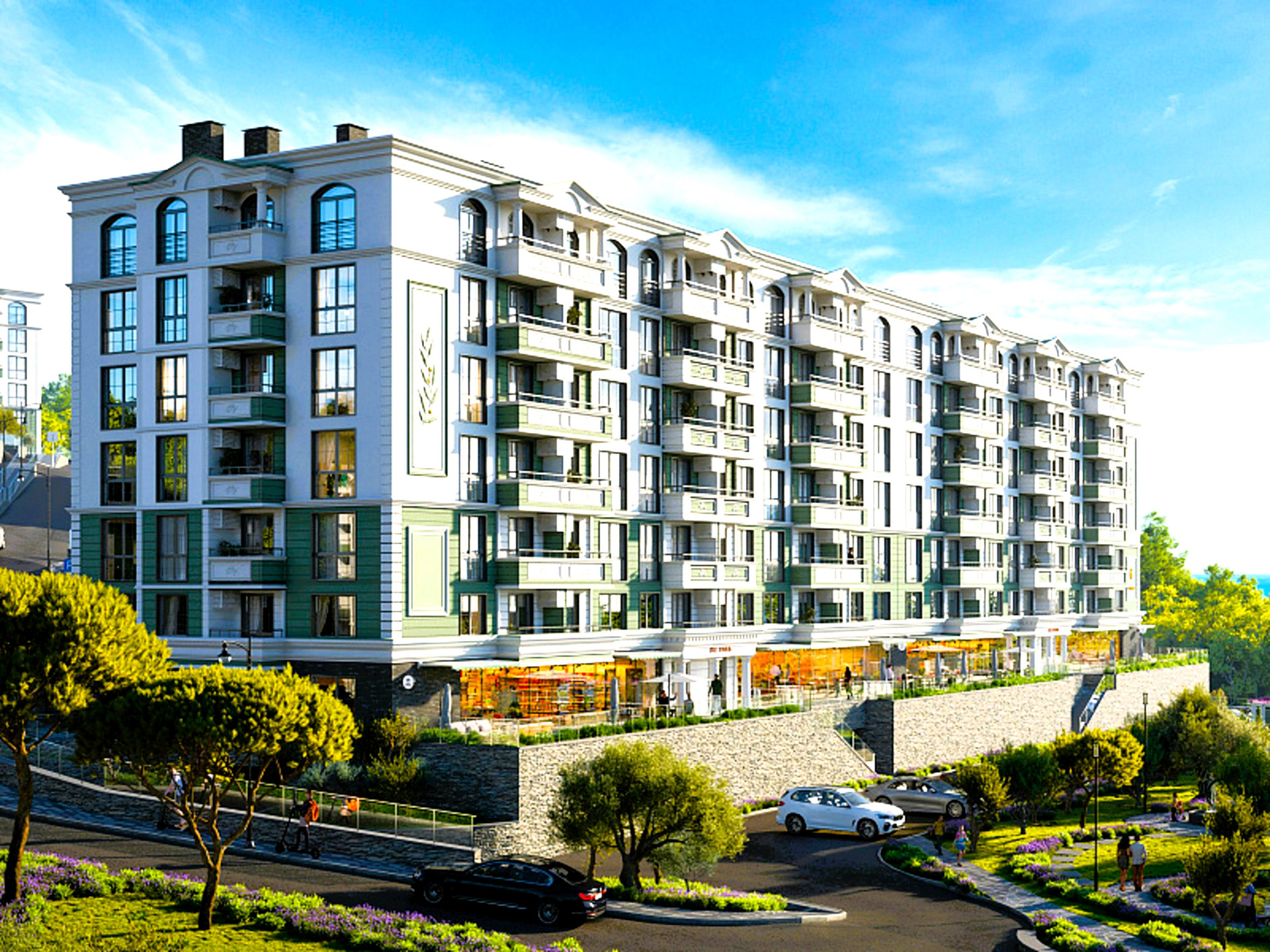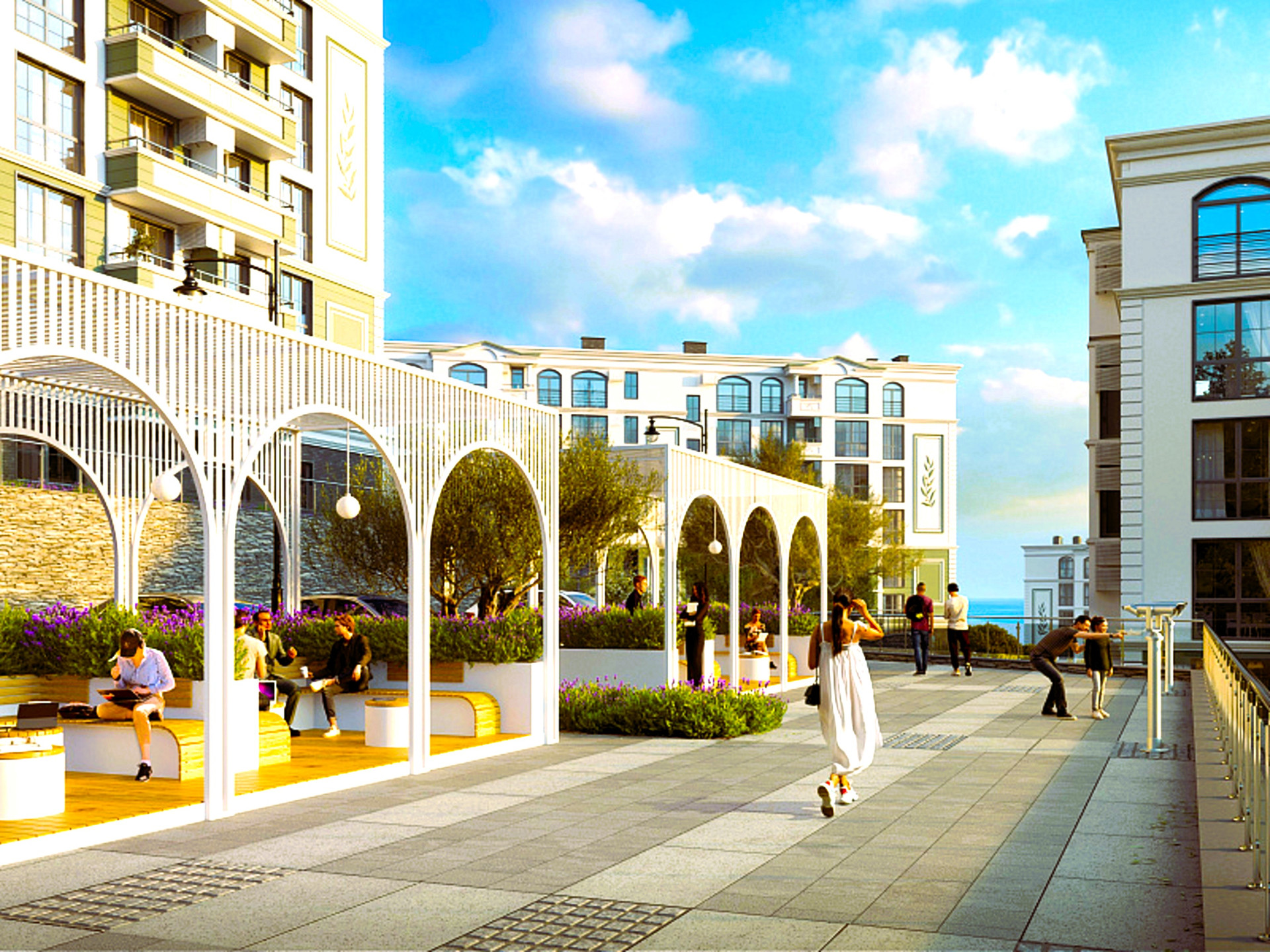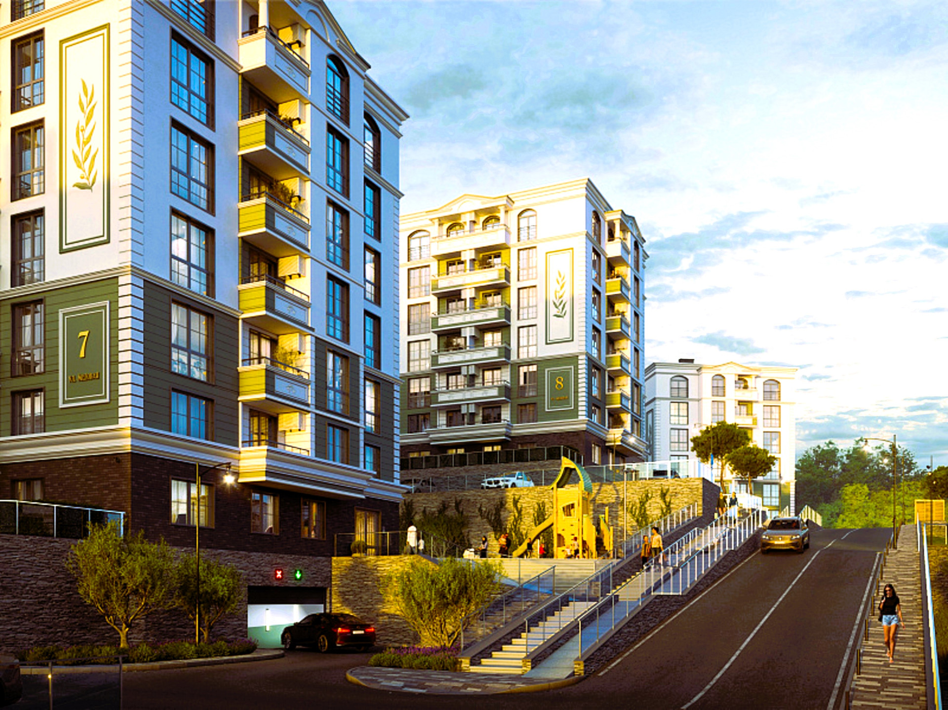 На территории комплекса бассейн, зоны релакса, зона Workout, экспресс-магазин, супермаркет, детский центр со студией развития, детские площадки, спортивные площадки, фитнесс-зал, салоны красоты, Spa-центр, ландшафтный дизайн. Имеется многоуровневый и придомовой паркинг.