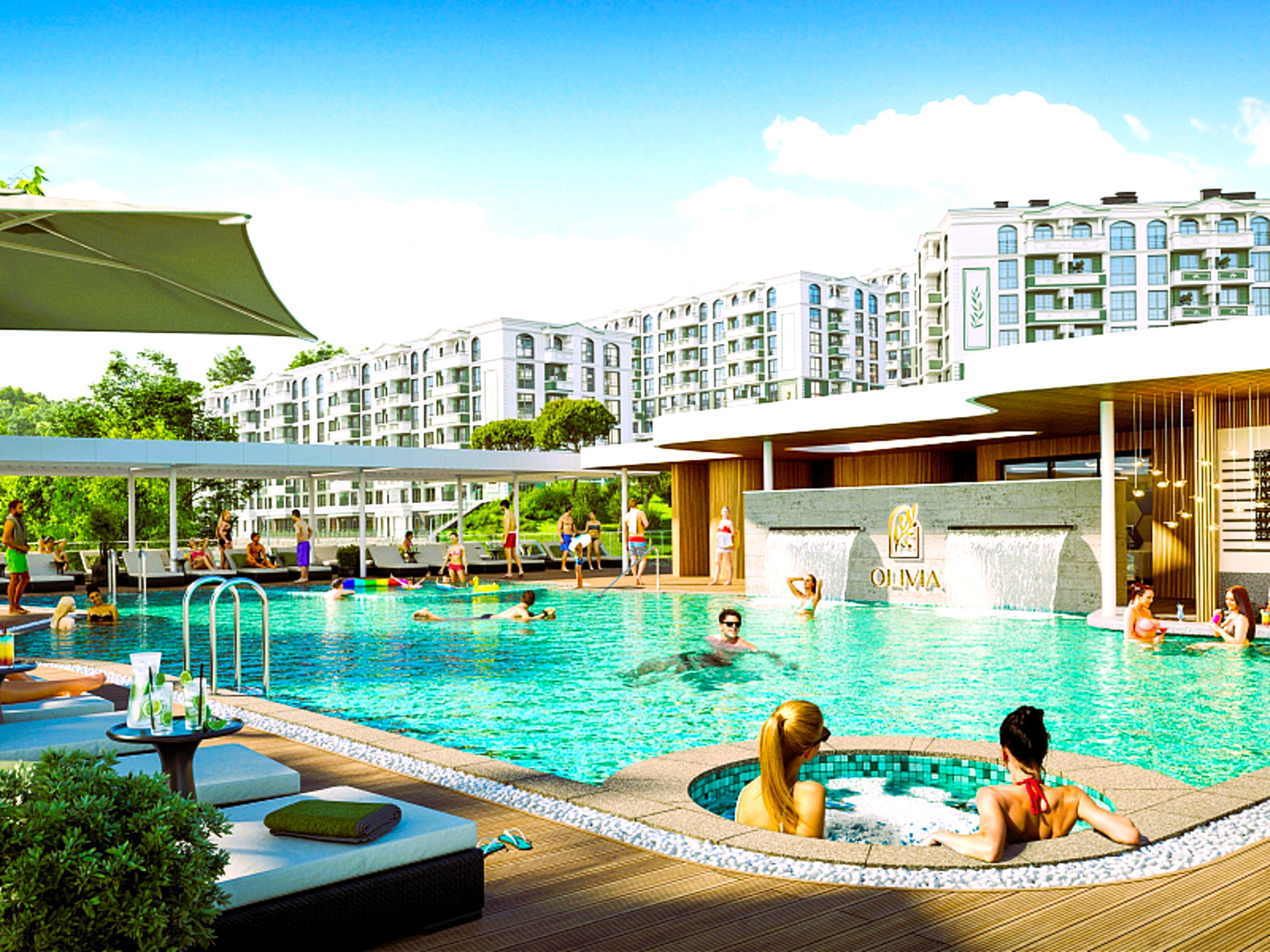 Территория закрытая с круглосуточным видеонаблюдением, консьерж, собственная управляющая компания. Пляжи с широкой береговой линией, шезлонгами и бунгало, кафе и барами.