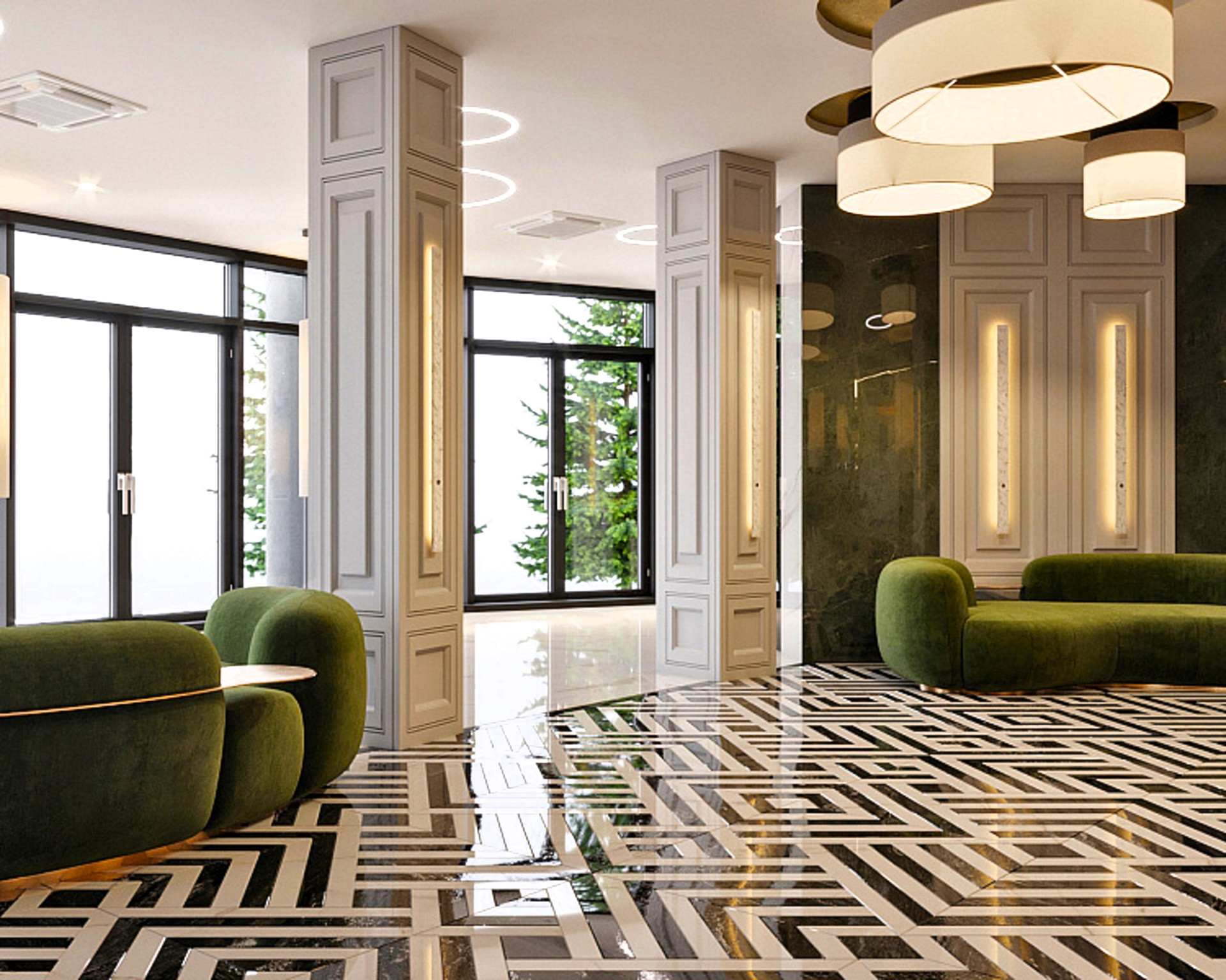 Дизайнерский вестибюль с двойным светом площадью более 1000 кв. м., роскошный лобби для особого отношения к важным персонам, итальянский и европейский ресторан с лучшими гастрономическими тенденциями и кулинарными концепциями, торговая галерея с ювелирными магазинами, пространства для проведения деловых и праздничных мероприятий, центр красоты и оздоровительный СПА-комплекс.