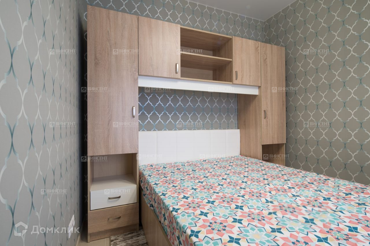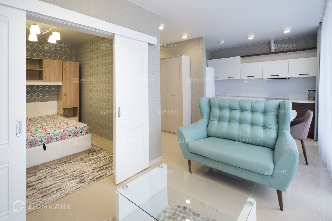 В квартире: -1 изолированная спальня, кухня-гостиная, совмещенный санузел.