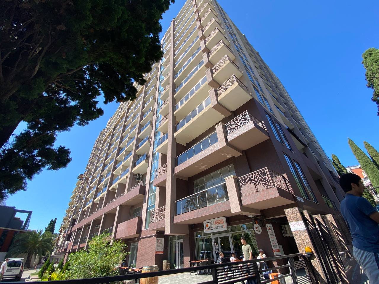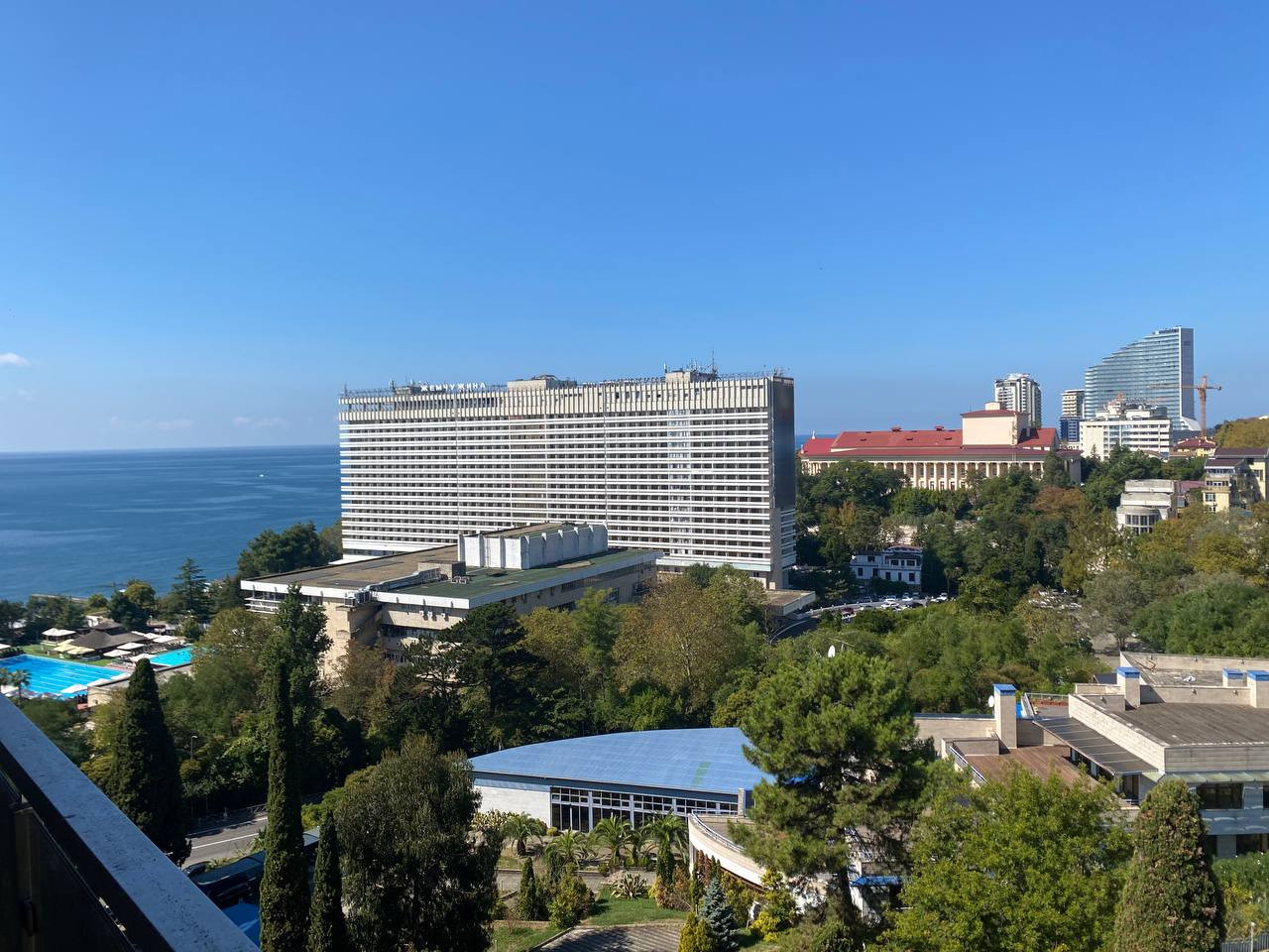 Наш апартамент имеет открытый балкон с великолепным видом на море и парк. Панорамные окна.