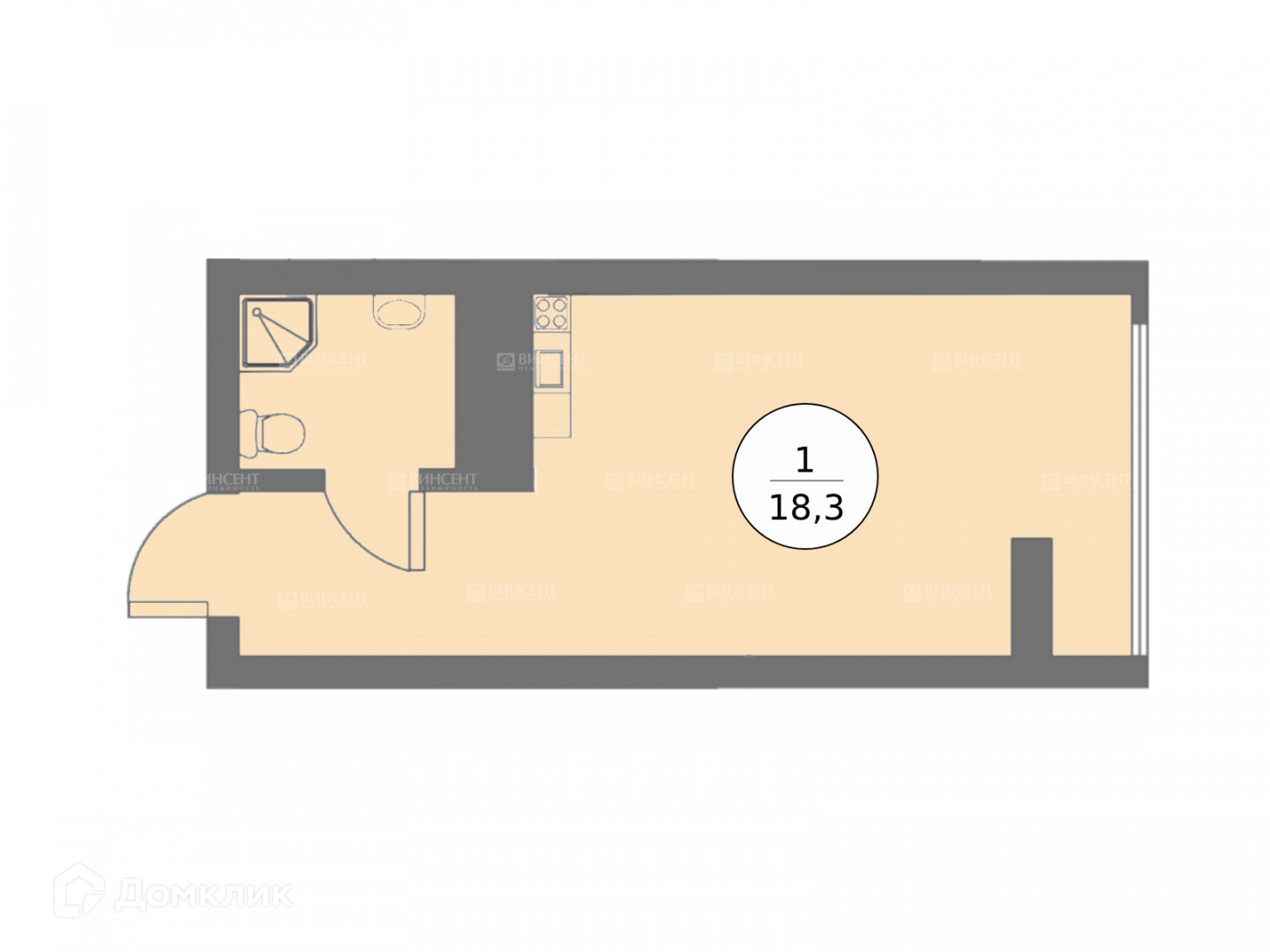 Общая площадь 18 м2