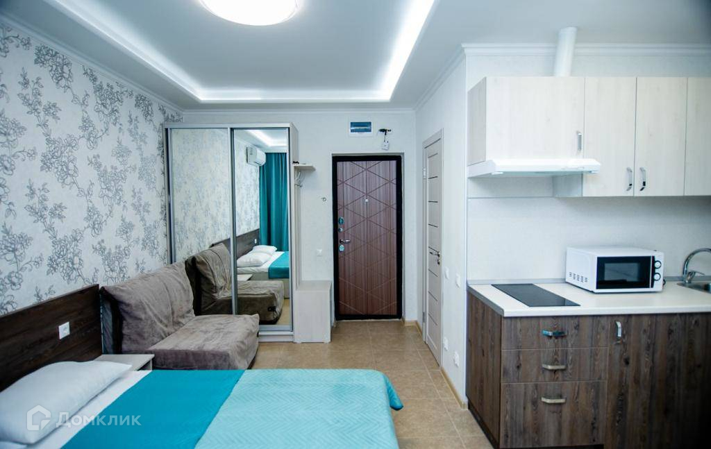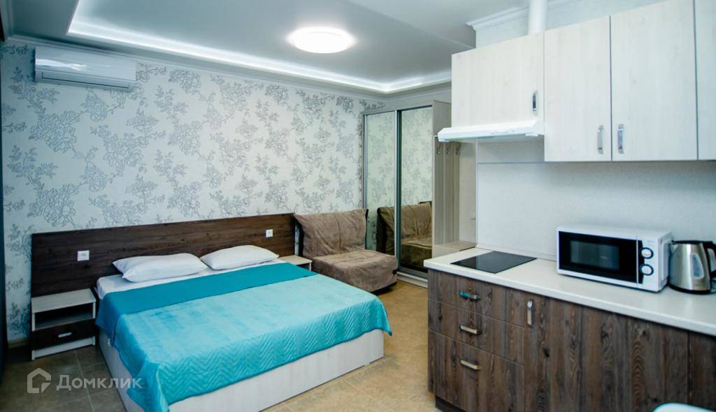 Апартаменты расположены: 1-й корпус (у бассейна), 1/3 этаж, площадью 24 м2 с хорошим видом во двор. У комнаты большое панорамное окно, балкон, правильная форма. В квартире хорошие ремонт, мебель и техника, закрытая территория, установлено видеонаблюдение, Бассейн во дворе дома, своя парковка,