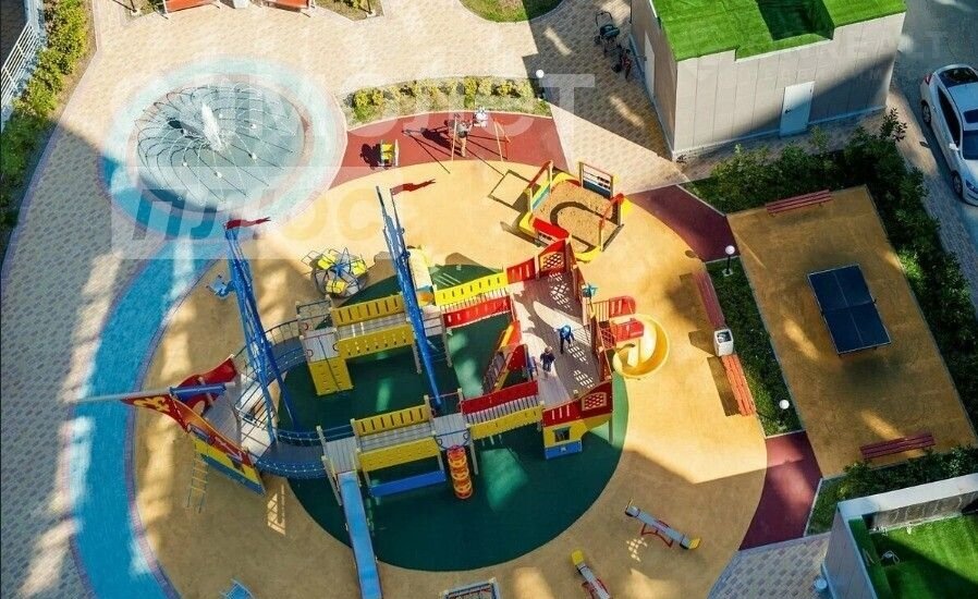 На территории комплекса расположены: открытый бассейн с зоной отдыха, теннисный корт, универсальная спортивная площадка для игры в футбол, баскетбол, волейбол. Кроме этого  оборудована выделенная зона Wоrkоut для полноценных занятий спортом, а также несколько современных детских площадок для детей разного возраста.