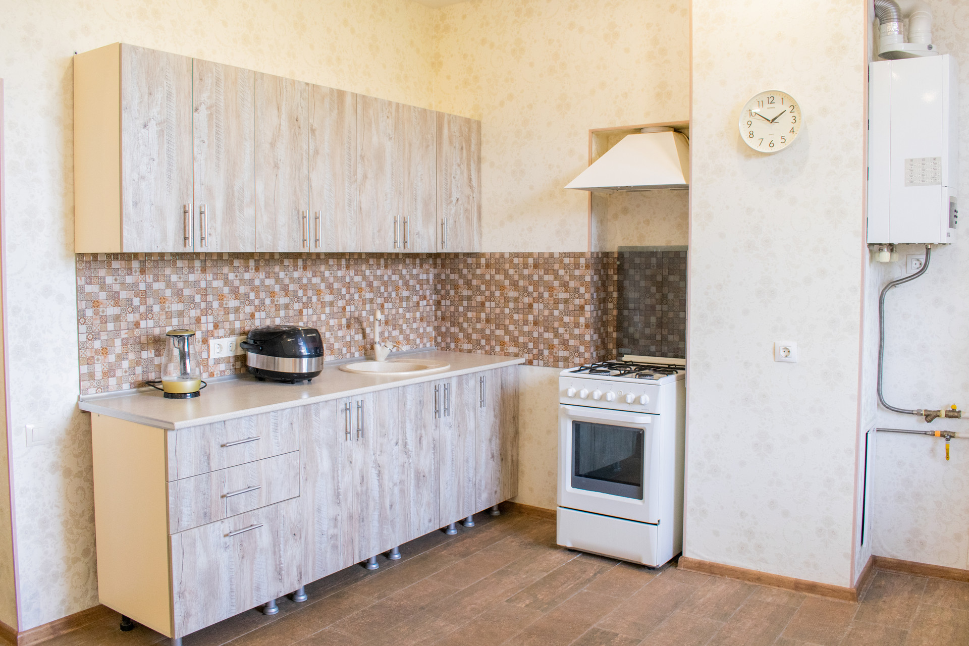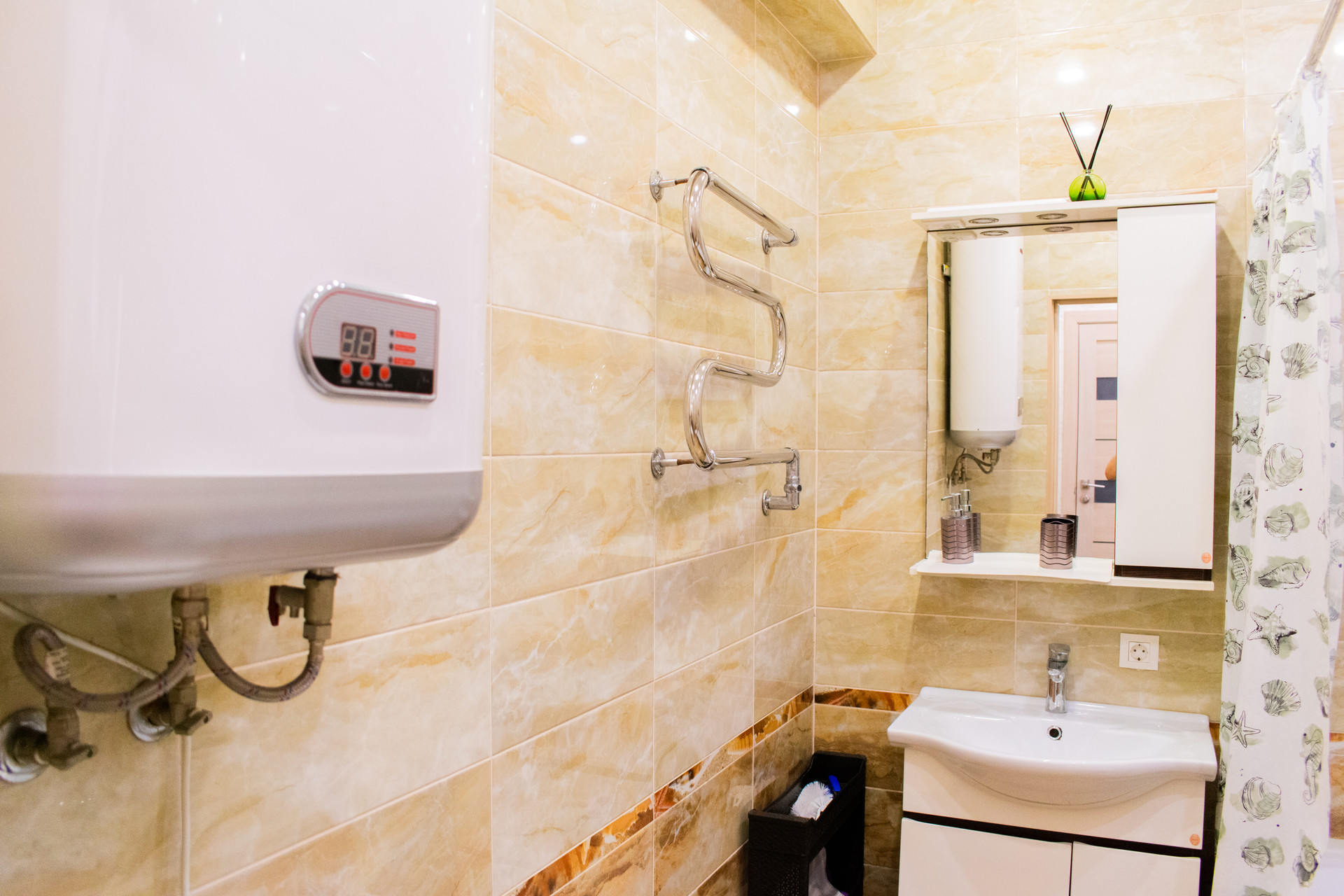 С коммунальными услугами (газ, вода холодная и горячая, тепло, водоотведение) все в порядке. На случай отключения горячей воды предусмотрен бойлер. Плата за ЖКУ очень низкая.