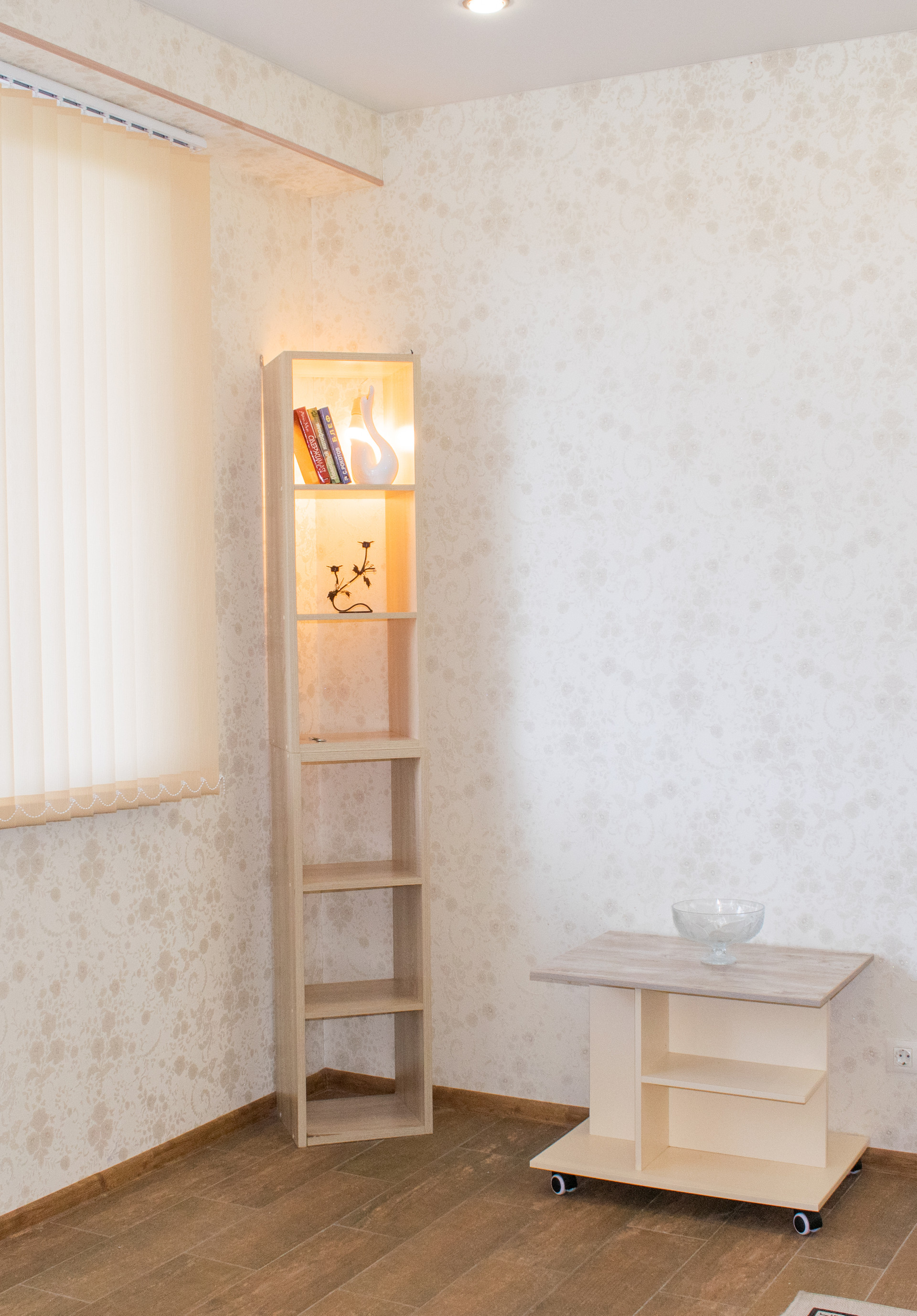 Вид из окна - на дальние дома, горы, светящуюся эстакаду (шума не слышно).