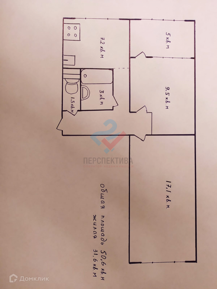 Общая площадь 51 м2