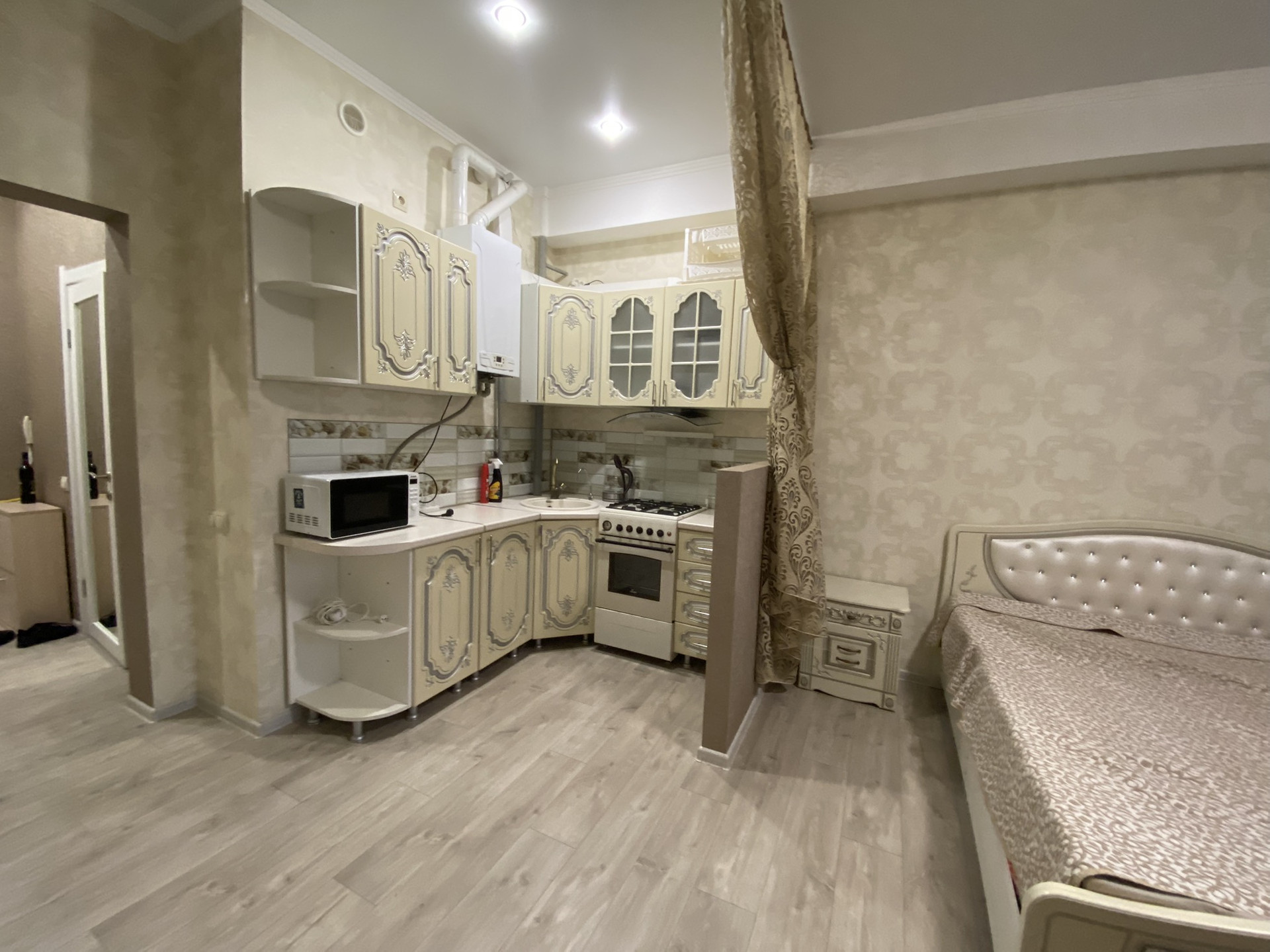 В продаже просторная уютная студия,  ЖК Олимпийский. Закрытая территория, вся инфраструктура в шаговой доступности. Инд газовый котел, низкие коммунальные платежи. Большой балкон. Окна в сторону Сочи закатная сторона.