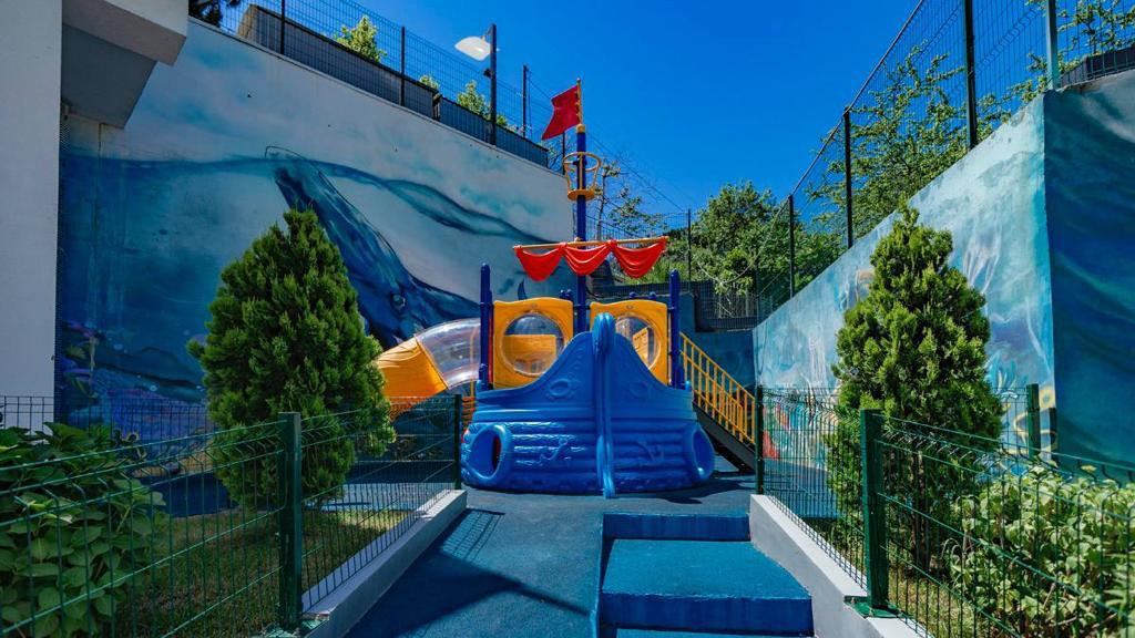 Tак жe на тeрpитории комплекса находятся детский сад, зона отдыха, спортивная, детская площадки, озеленение.