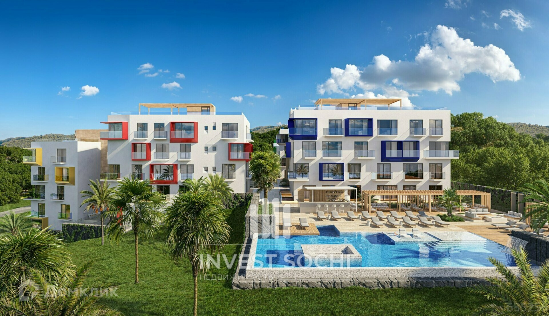 Все апартаменты с просторными балконами, с которых открывается потрясающий вид на море, горы и нацпарк.