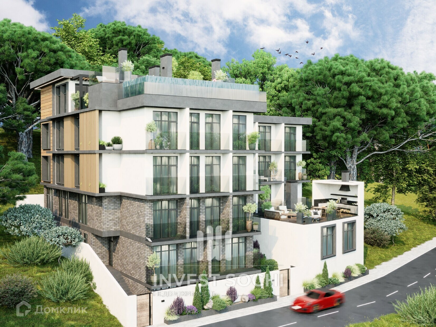 Закрытая территория, также эксплуатируемая кровля с бассейном и панорамой на море!