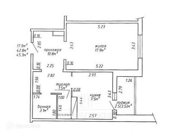 Общая площадь 51 м2