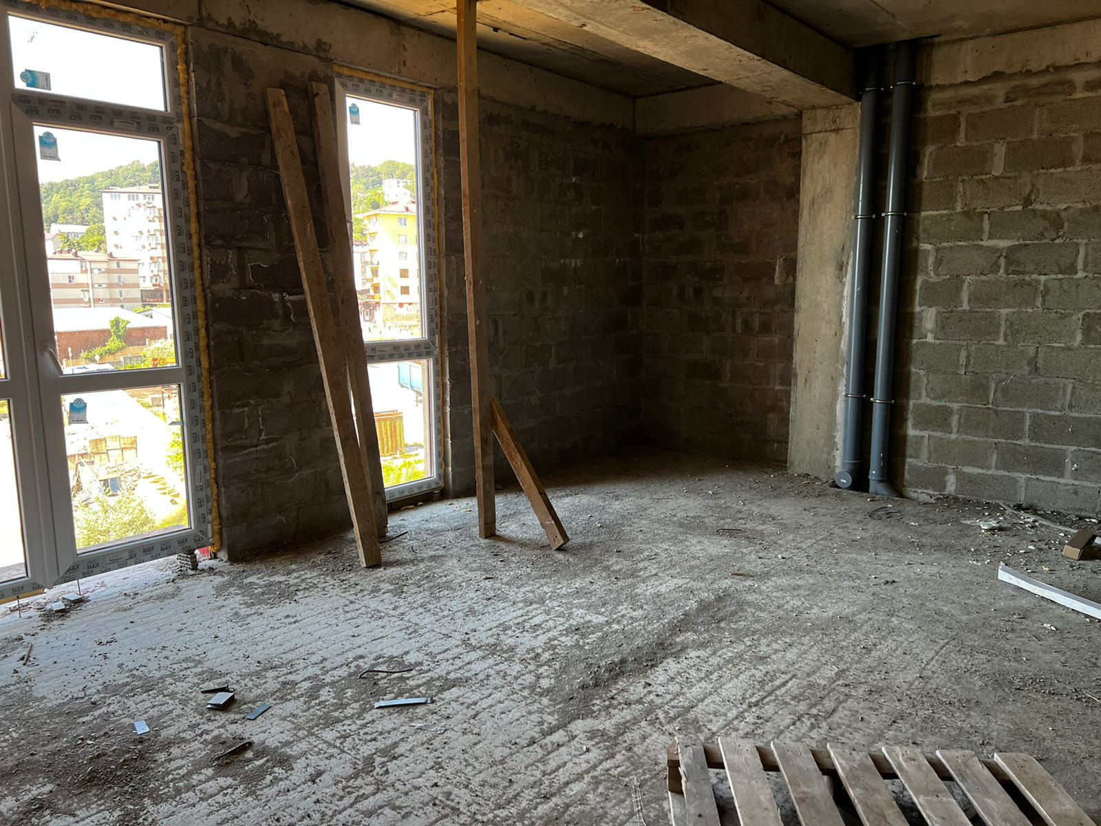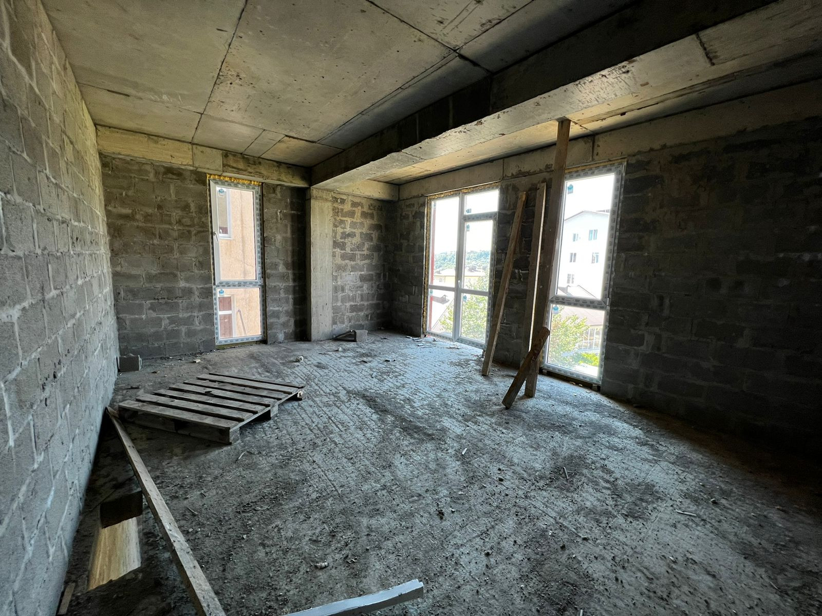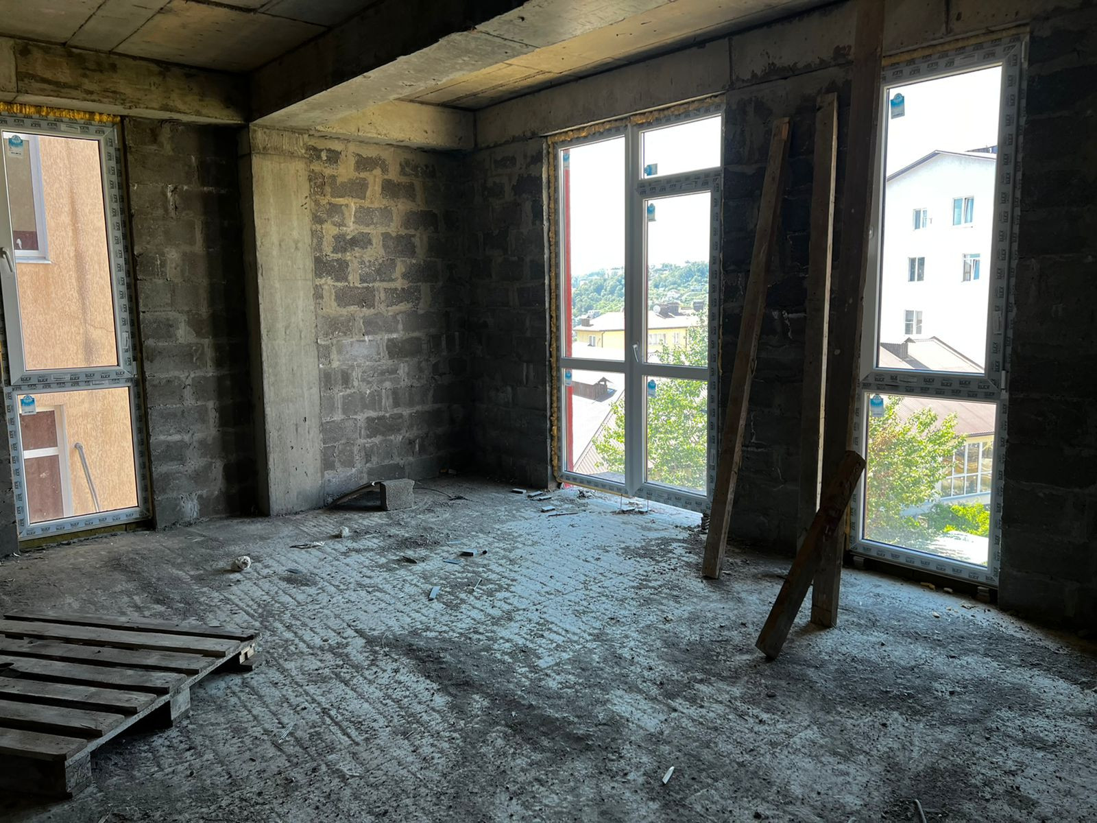 Угловая квартира, представлена в черновой отделке. Отлично планируется за счет 3х световых точек.