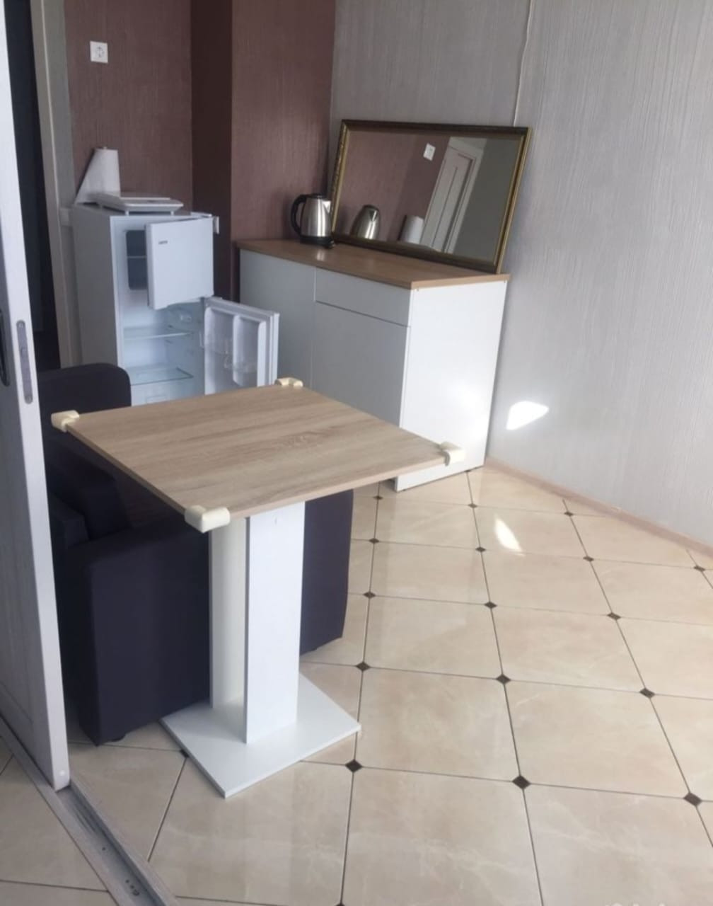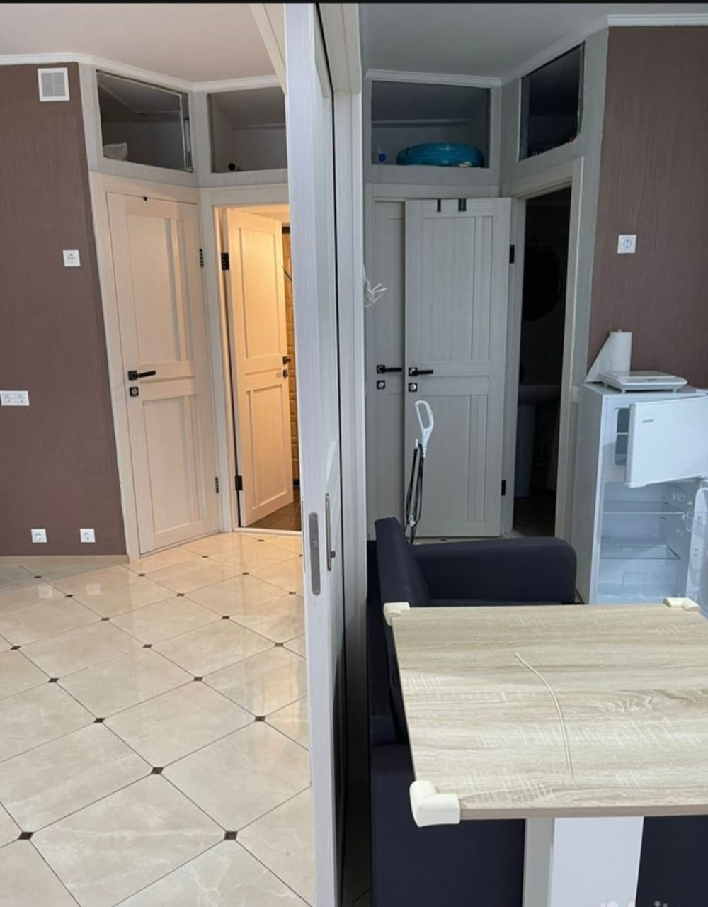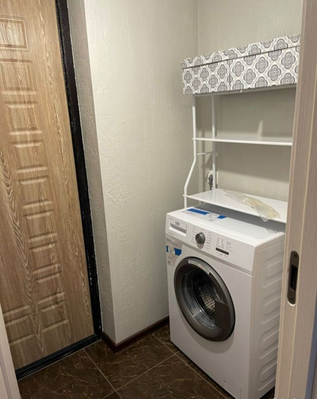 В прихожей размещена стиральная машина. Две двери, закрывающиеся на ключ, ведут в  две отдельные части квартиры, в каждой из которых есть санузел с душевой, бойлером и зоной кухни.