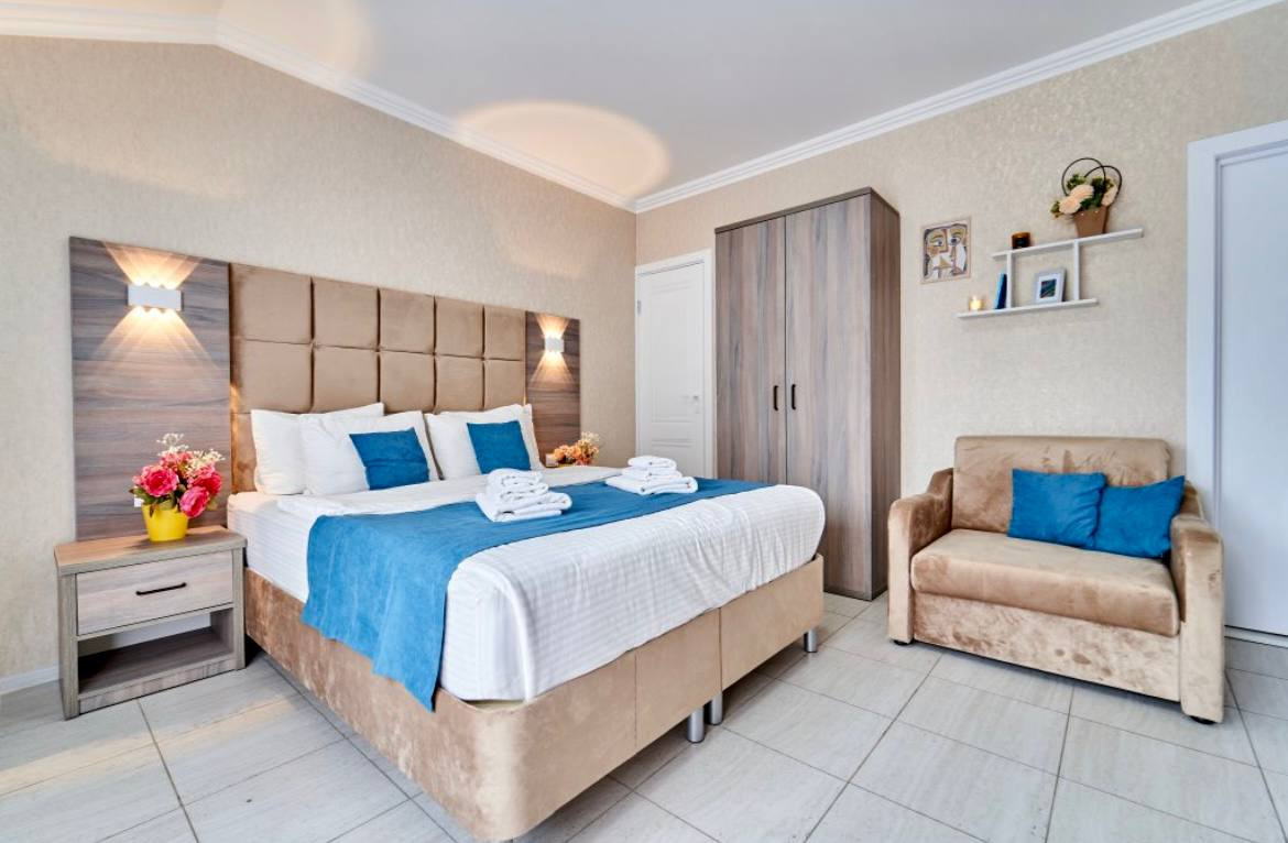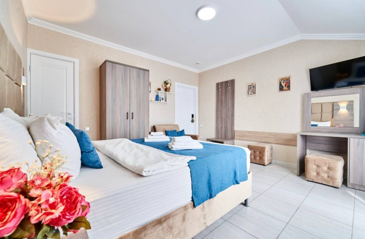 Расположен в самом сердце Адлера. Рядом кафе , рестораны, парки , океанариум, дельфинарий, зоопарк, бассейн, спа, продуктовые магазины, аптеки и т.д