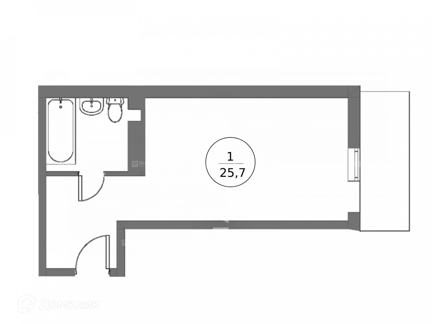 Общая площадь 25.7 м2