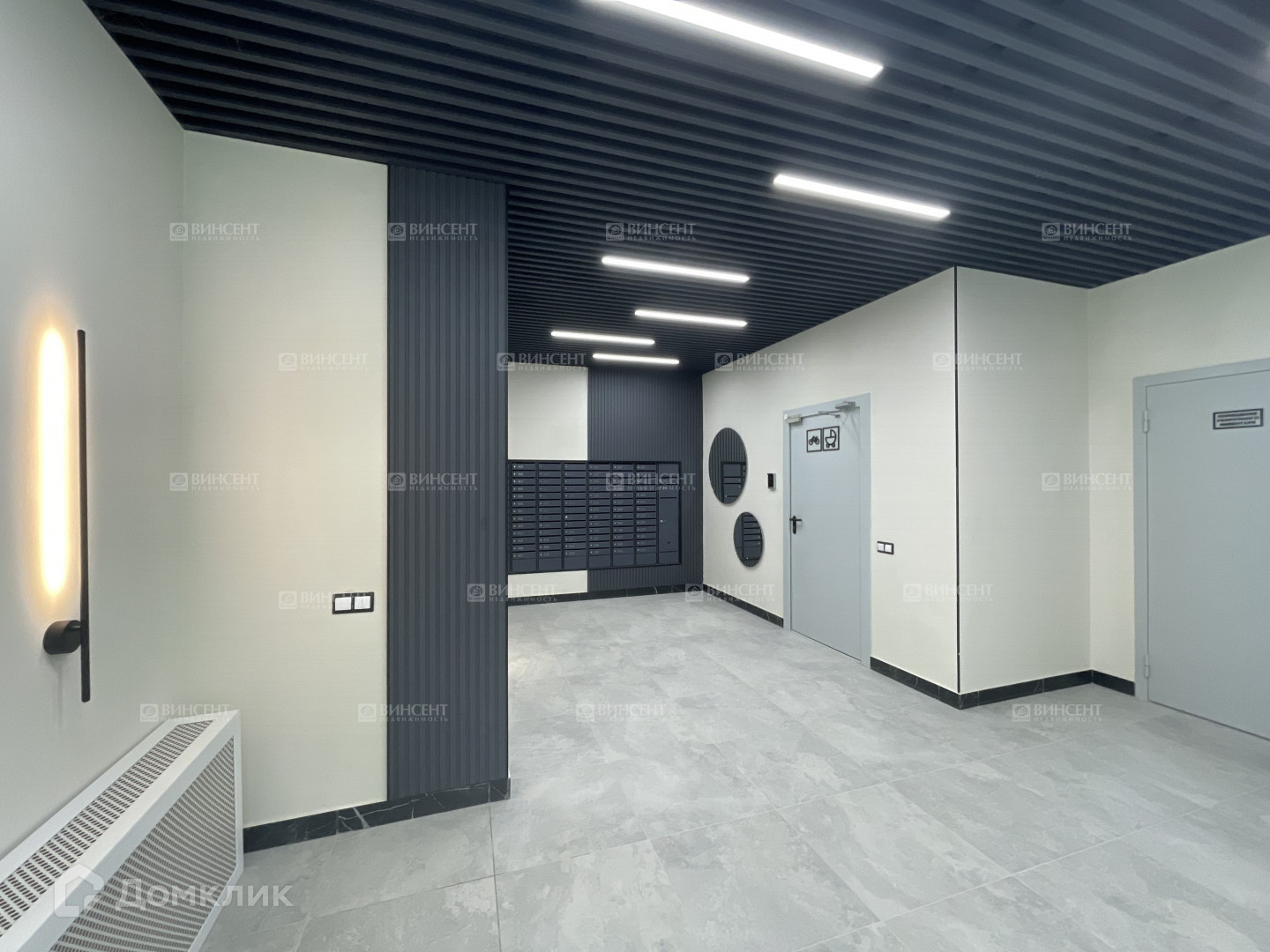 В каждом подъезде расположится комната для консьержа, колясочная, лапомойка для домашних животных. Отделка полов будет выполнена керамогранитом, потолки Грильято, стены окрашены краской уровня Caparol или аналог, вставки на стенах из керамогранита.